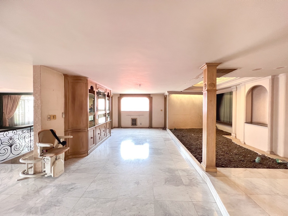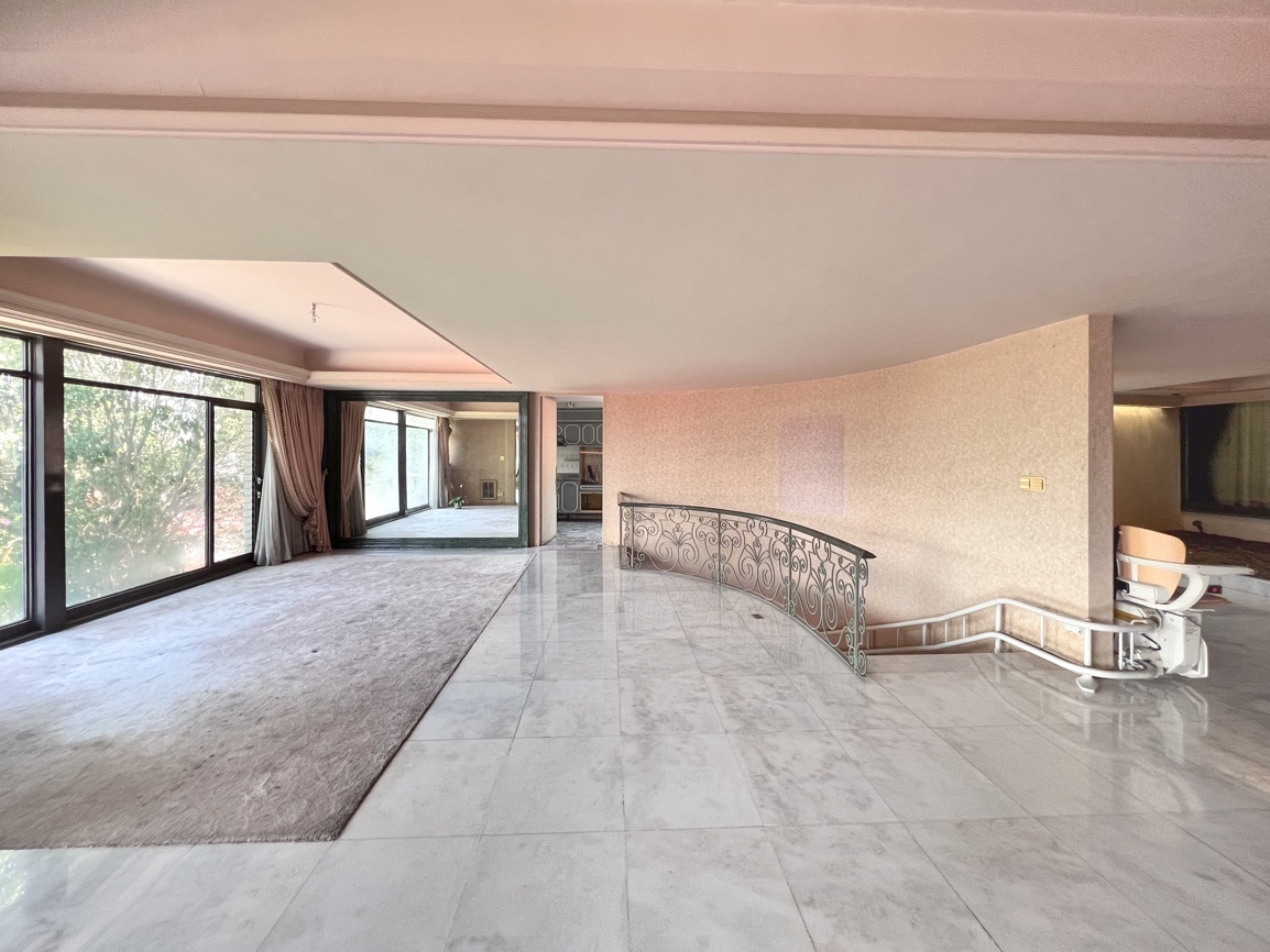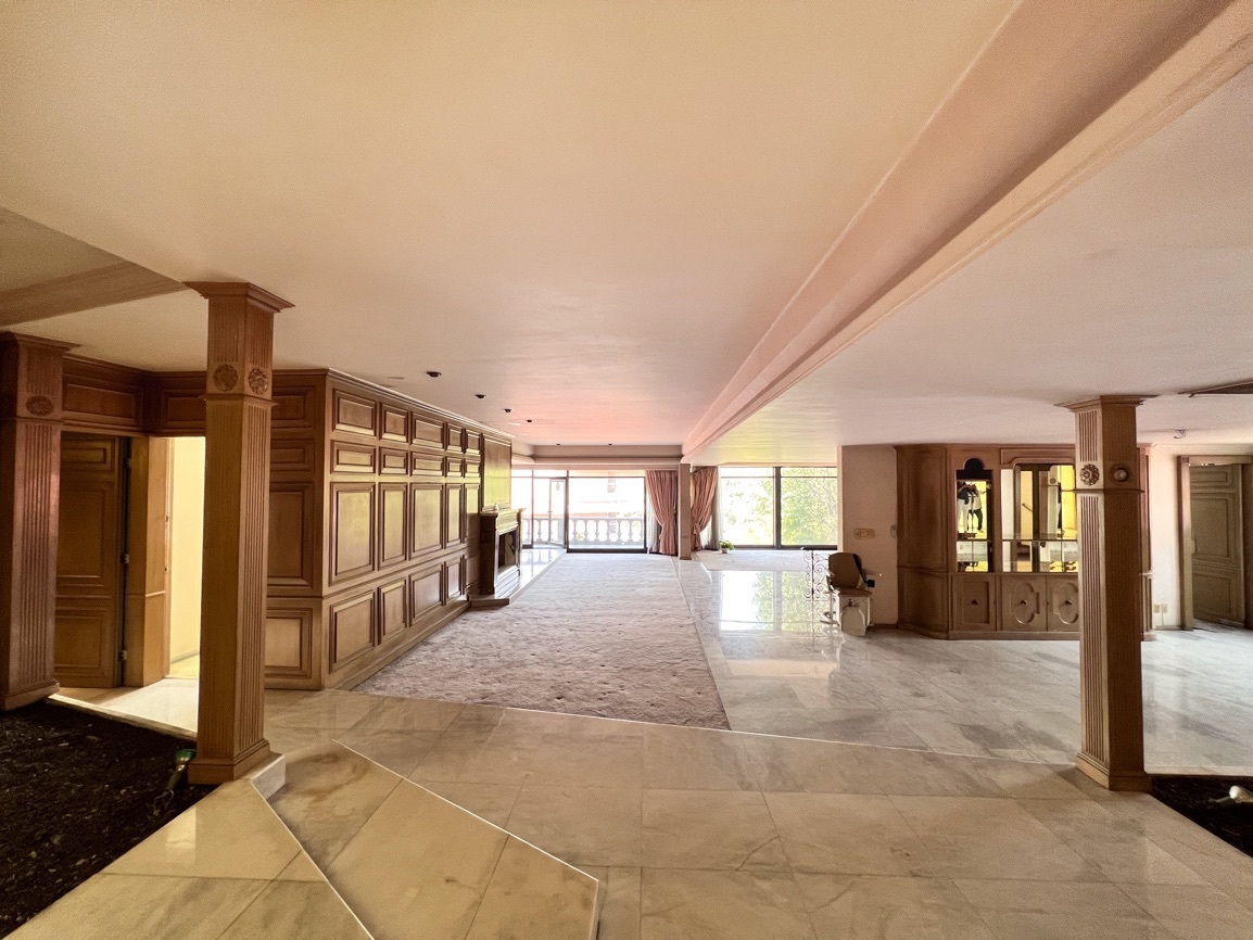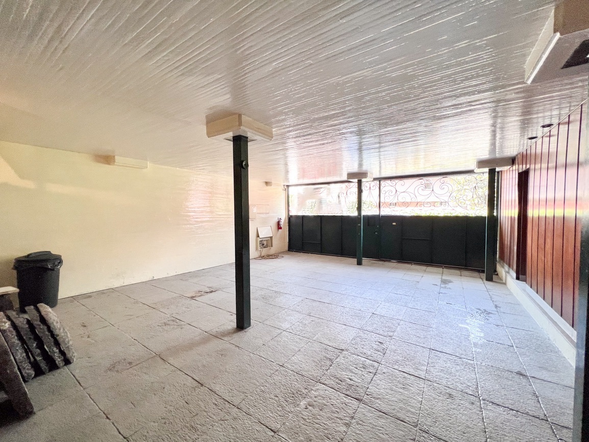 Cuenta con 4 recámaras, 3 baños y 2 medio baños. El primer piso alberga un salón social con bar y un baño de visitas. El segundo piso ofrece un área de sala-comedor espaciosa, recámaras con vistas al jardín, un estudio, cocina, antecomedor y un área adicional para una cuarta recámara. El sótano incluye 5 estacionamientos, cuarto de servicio, lavandería y bodega.