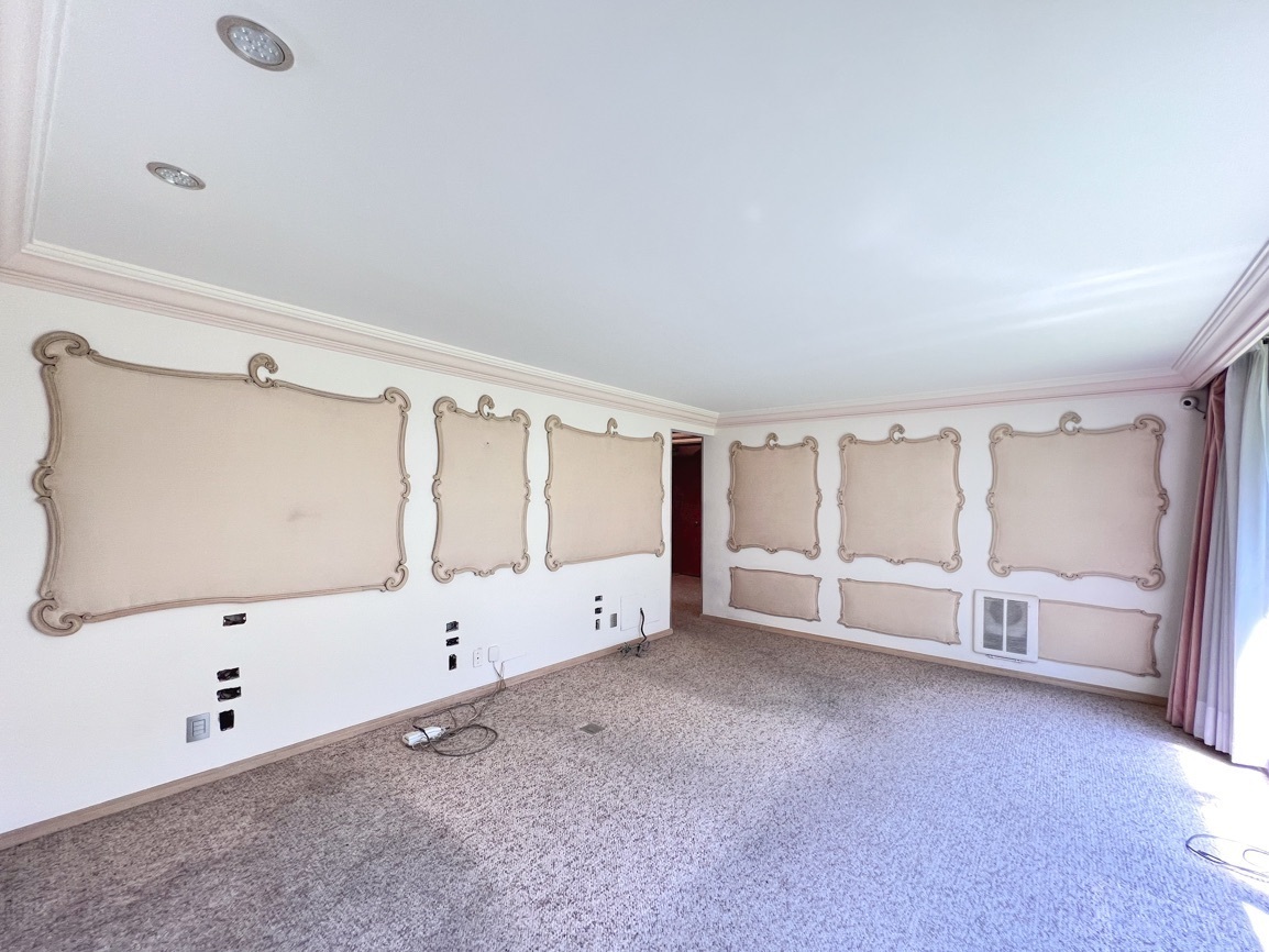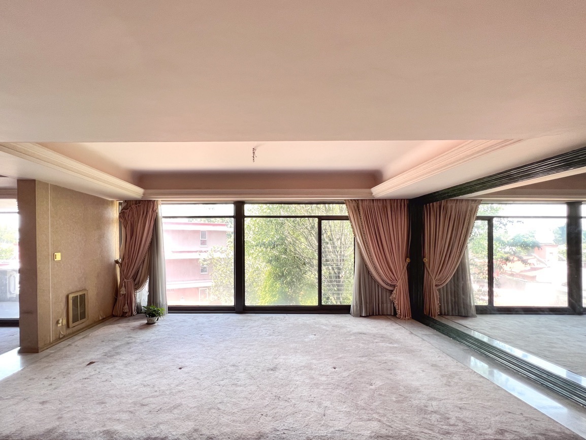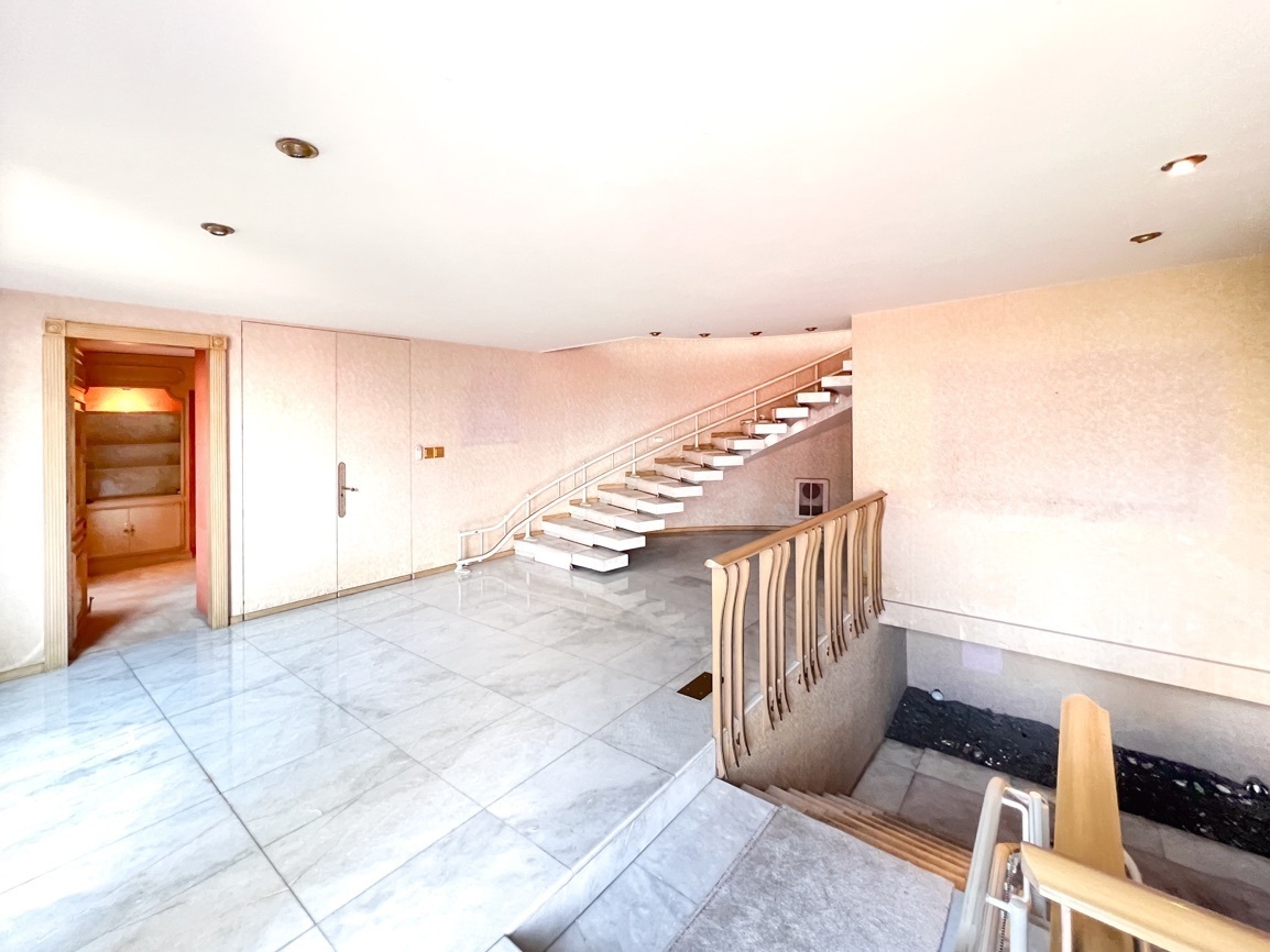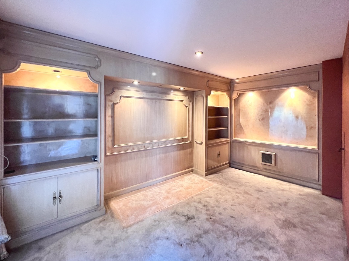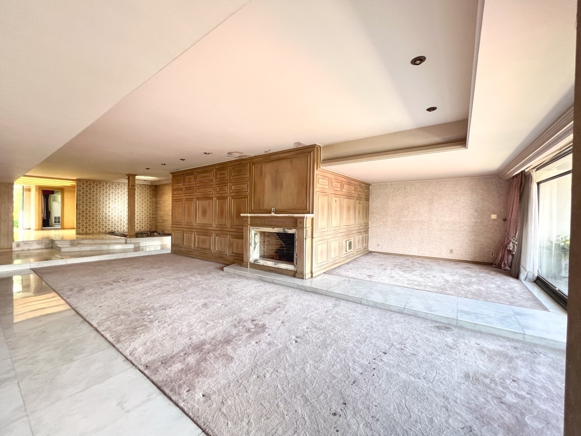 Cuenta con 4 recámaras, 3 baños y 2 medio baños. El primer piso alberga un salón social con bar y un baño de visitas. El segundo piso ofrece un área de sala-comedor espaciosa, recámaras con vistas al jardín, un estudio, cocina, antecomedor y un área adicional para una cuarta recámara. El sótano incluye 5 estacionamientos, cuarto de servicio, lavandería y bodega.