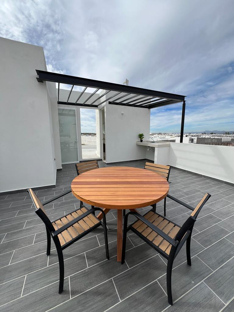 🌇 En el tercer nivel, un roof garden con pergolado, barra de preparación y medio baño complementa los espacios de la vivienda.