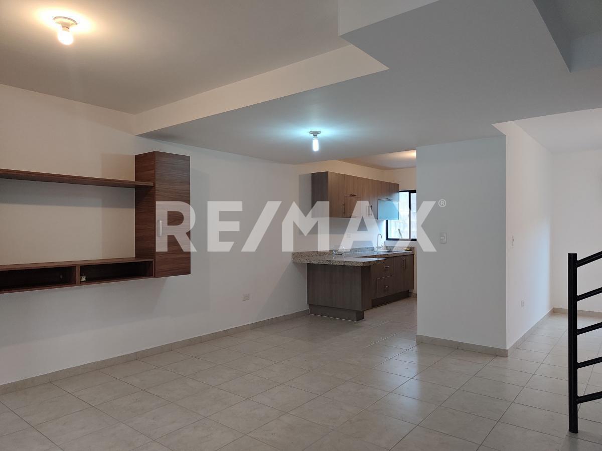 Sala y Comedor Modernos, con mueble de entretenimiento incluido, cocina integral moderna.