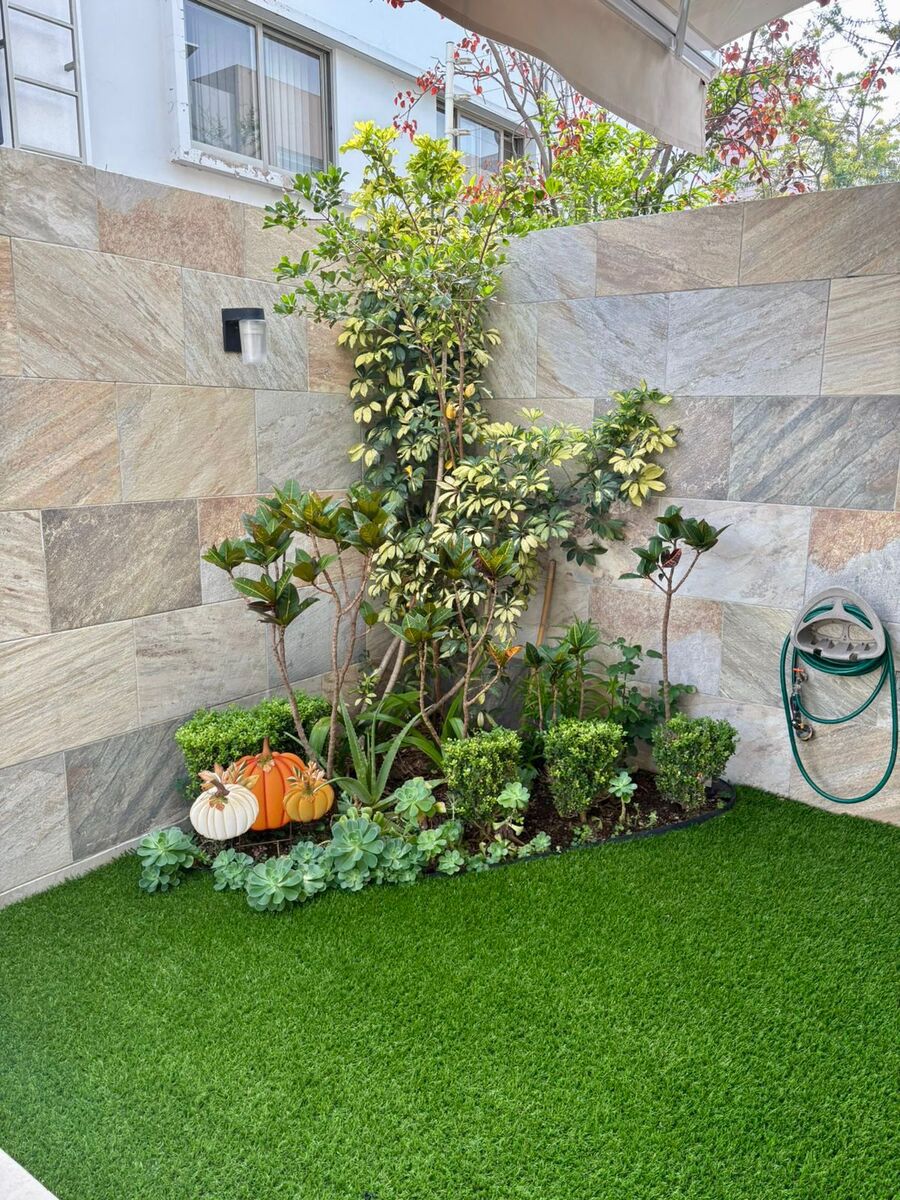 Toldos retráctiles automatizados tanto en la cochera como en el patio.