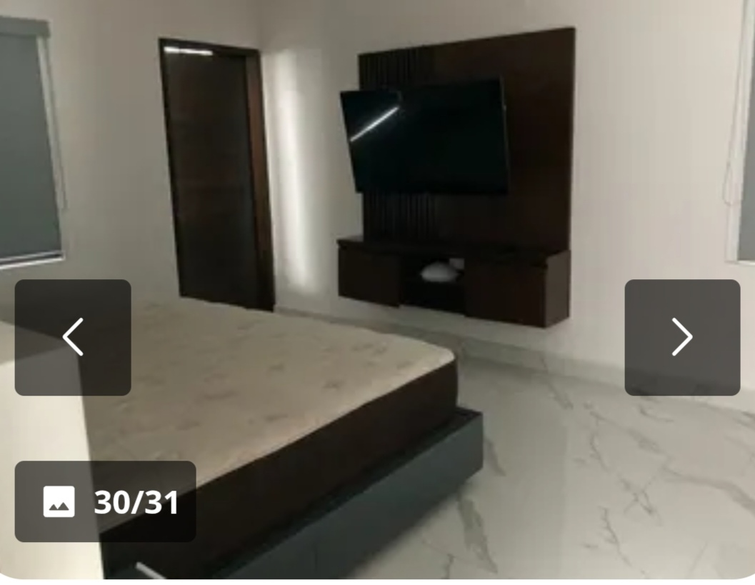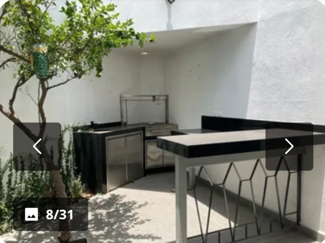 Sala-comedor, medio baño y cocina totalmente equipada. Patio con asador, cuarto para juegos, lavandería, baño de servicio completo, cochera con portón eléctrico para un auto.