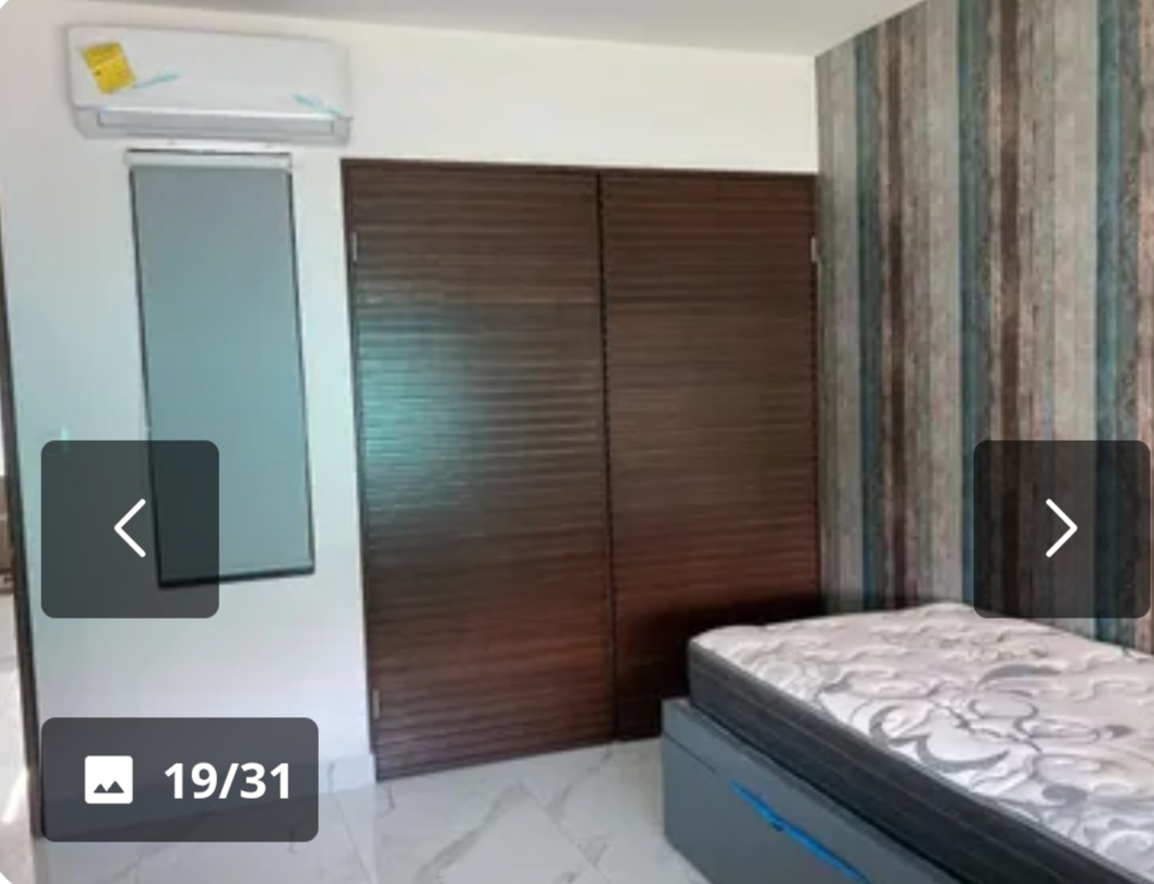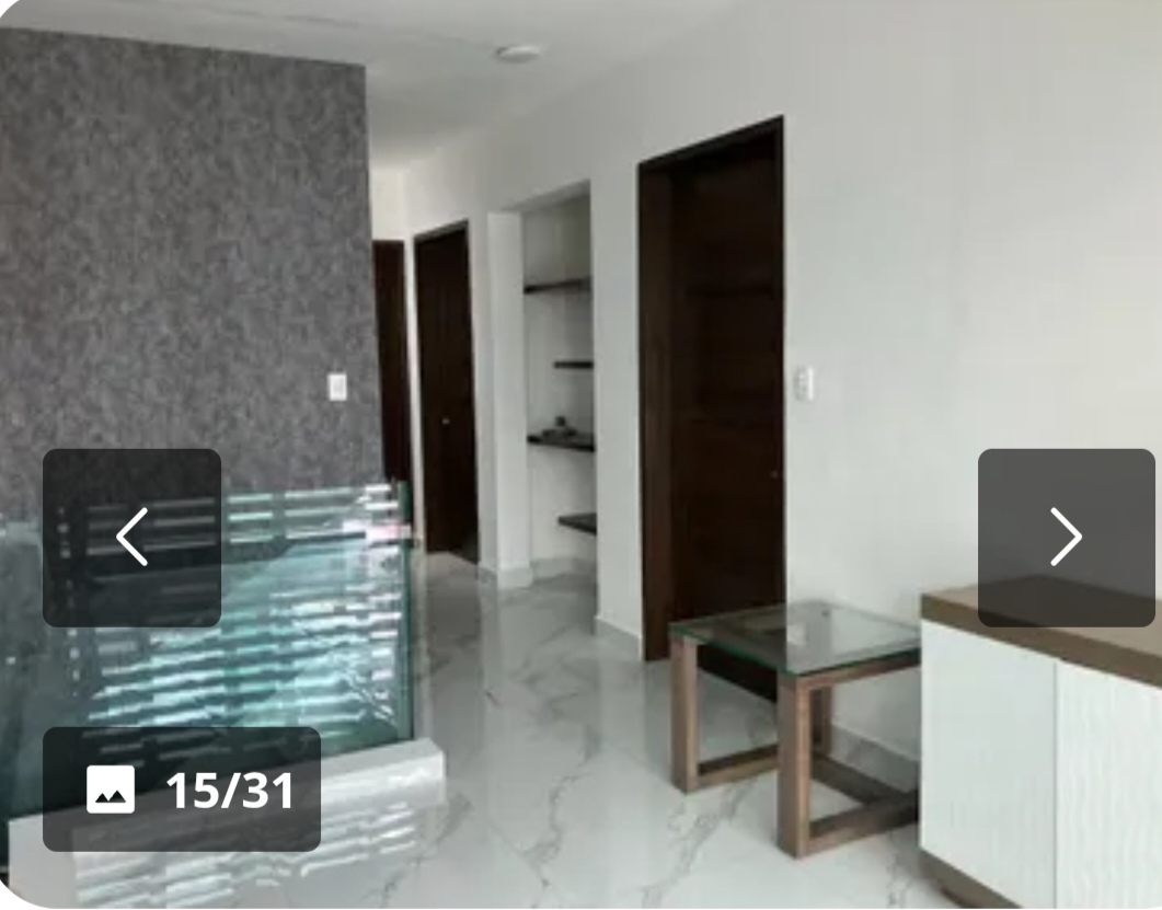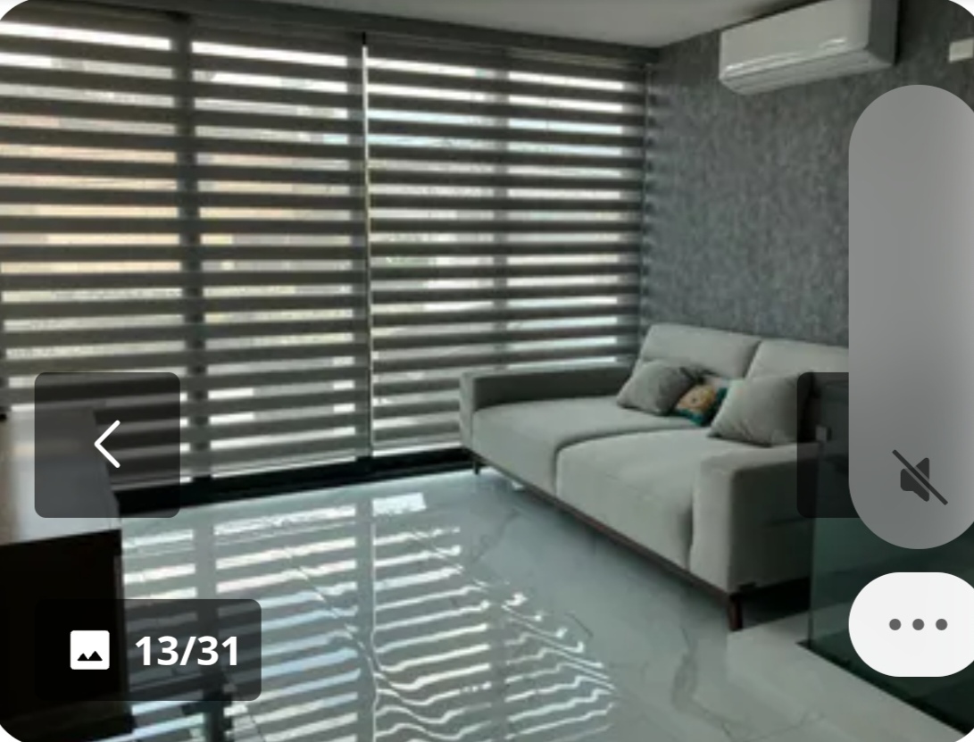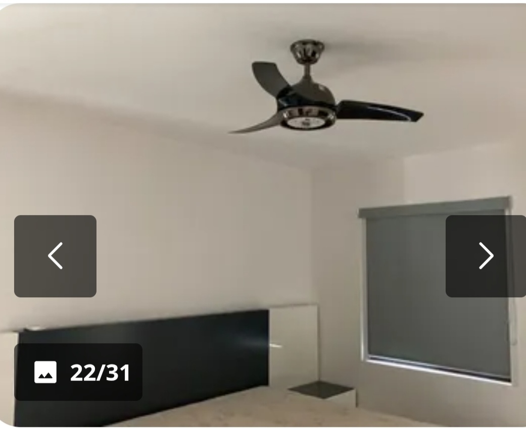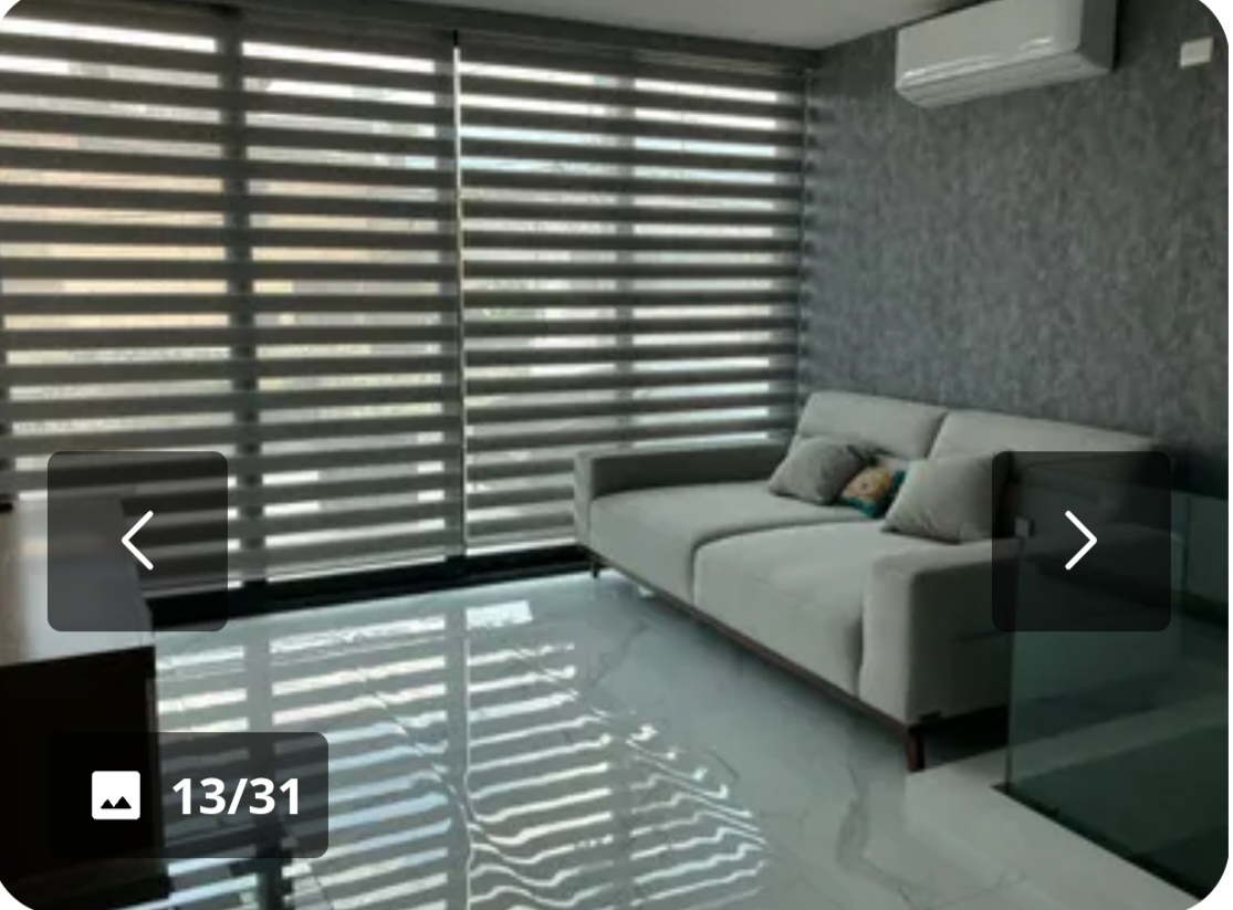 Estancia familiar con balcón. Recámara principal con baño-vestidor. Dos recámaras con closets y comparten baño. Cuenta con persianas, abanicos de techo y minisplits.
