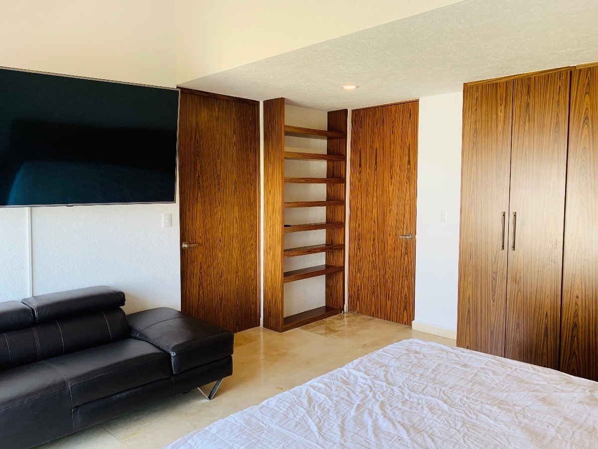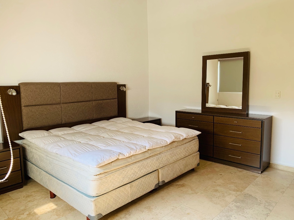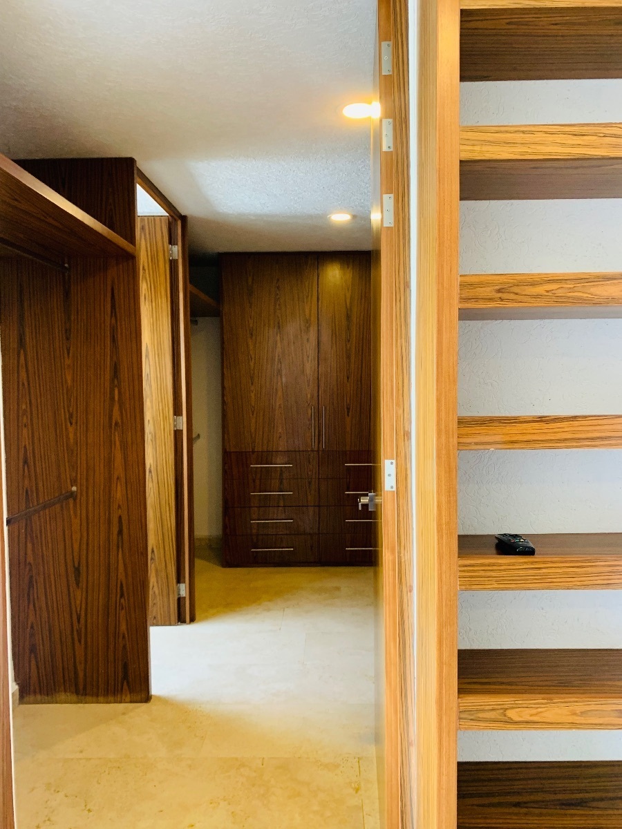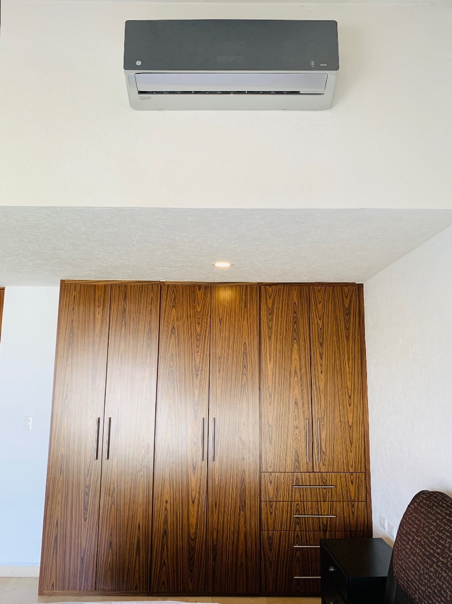 La recámara principal con amplio vestidor, zapatera independiente, baño con tina de hidromasaje y minisplit