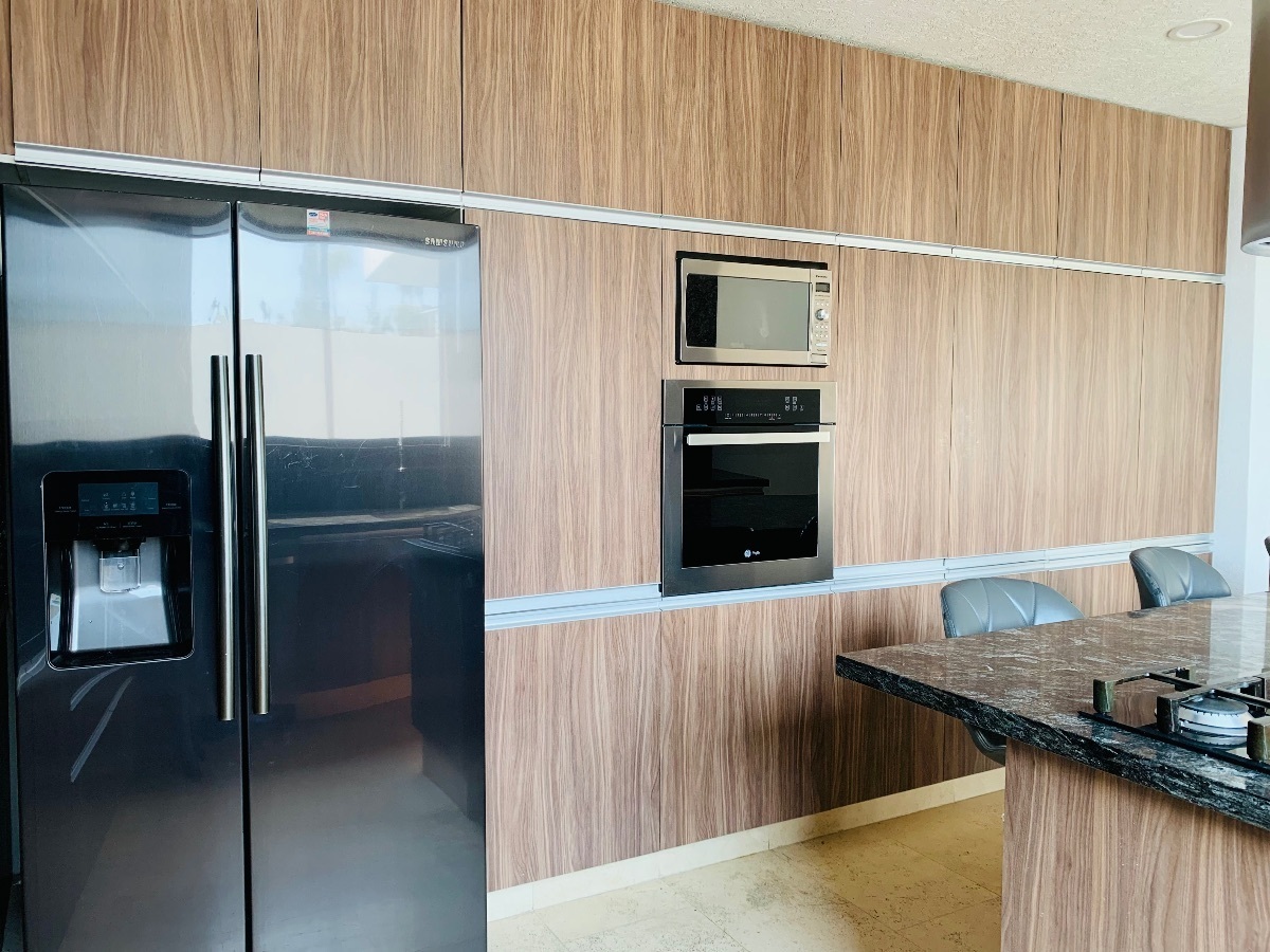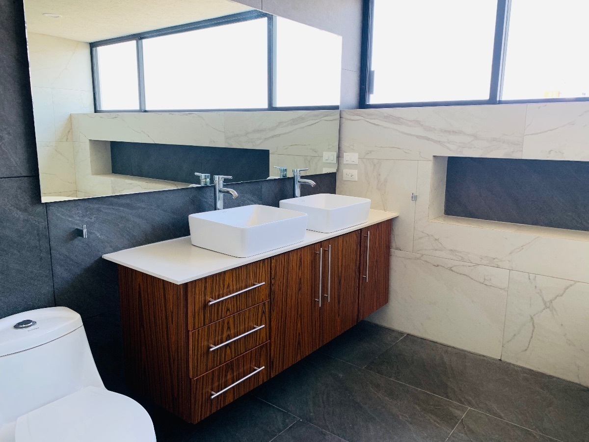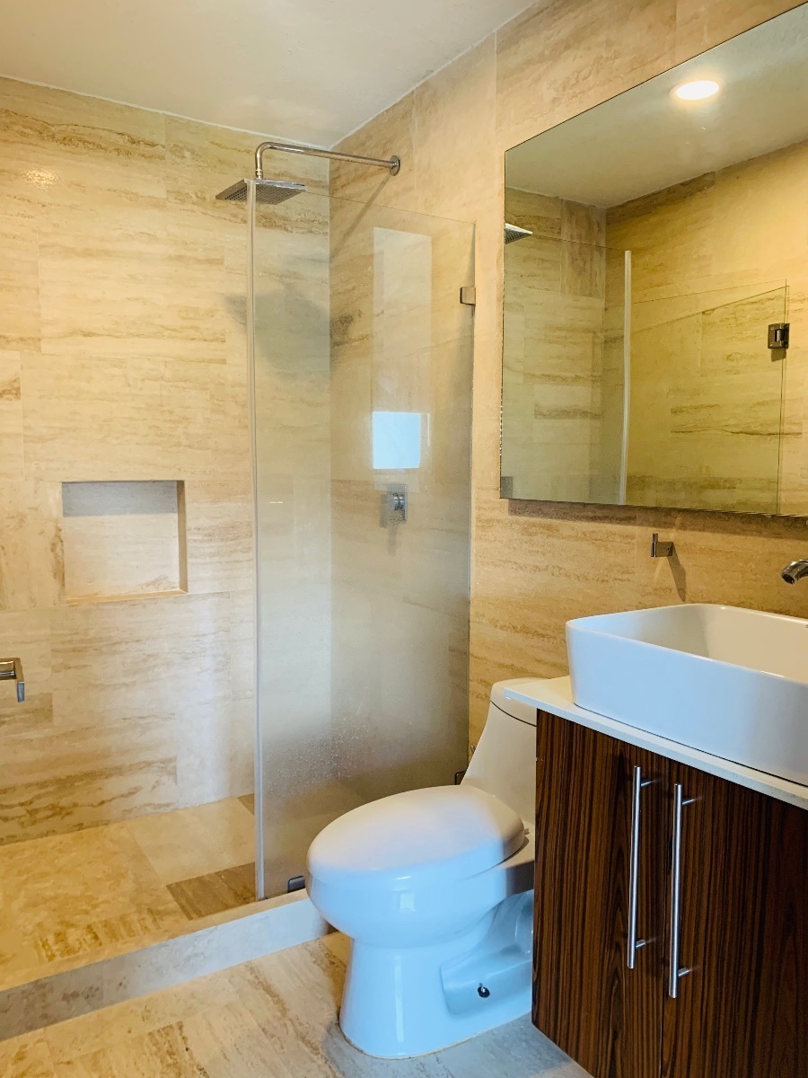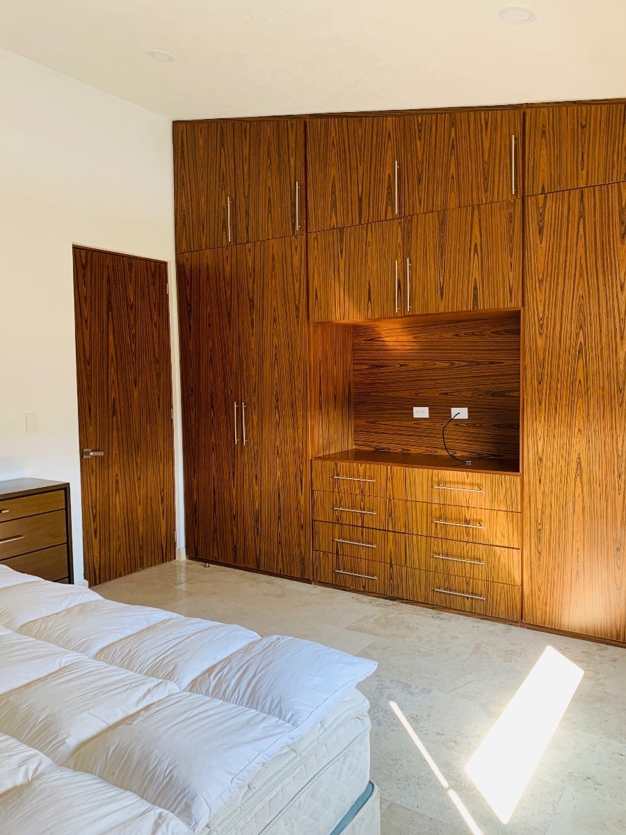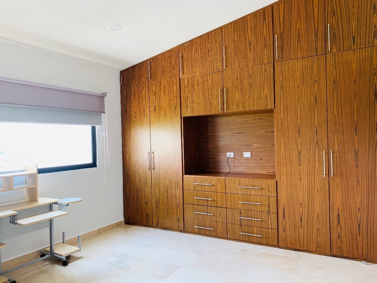 La recámara principal con amplio vestidor, zapatera independiente, baño con tina de hidromasaje y minisplit