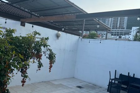 É alugada mobiliada. Possui três quartos, dois banheiros e meio, cozinha equipada, sala, sala de jantar, terraço, pátio e garagem para dois ou três carros.