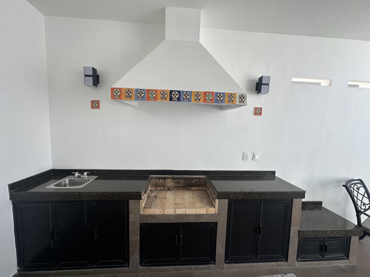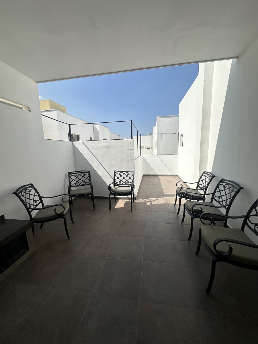 El patio es especialmente amplio con palapa, perfecto para reuniones o disfrutar al aire libre.