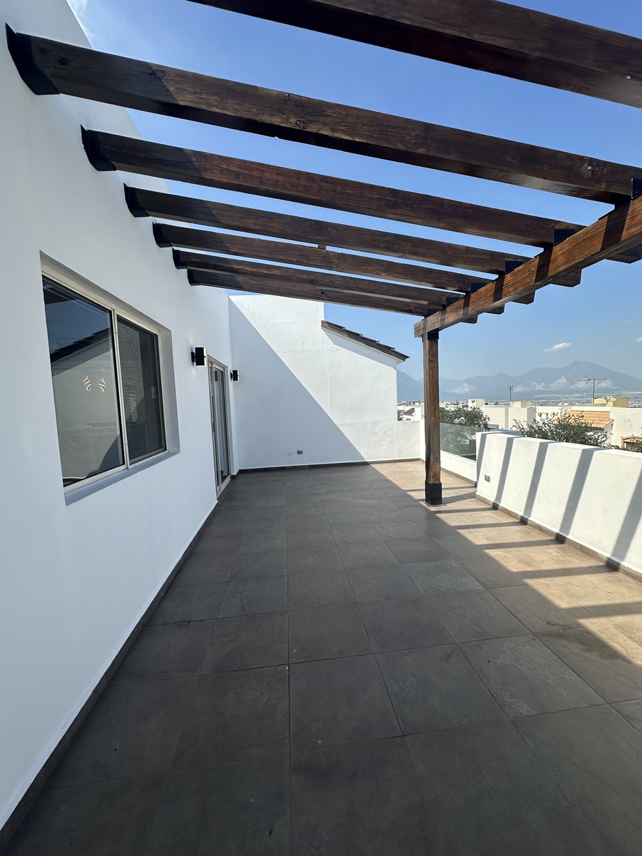 O pátio é especialmente amplo com palapa, perfeito para reuniões ou desfrutar ao ar livre.Casa con 4 recámaras, 3 baños + medio baño. Construcción ~241 m², terreno ~166 m². Zona: Cumbres Monterrey Sector C.