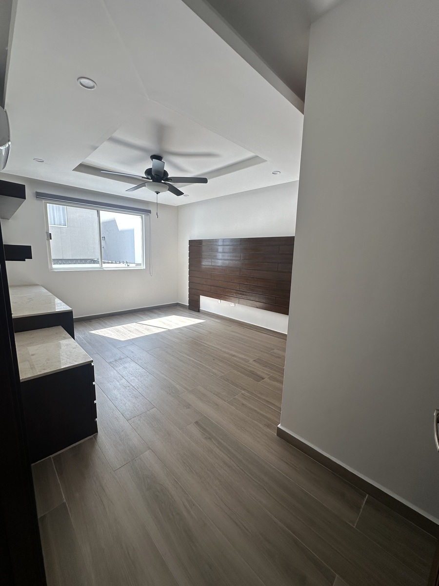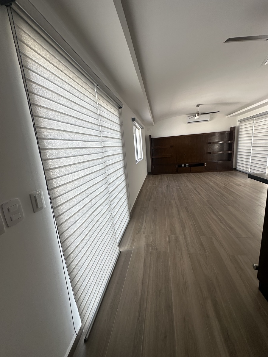 La casa tiene 4 habitaciones amplias, cada una con su propio baño y closet, en la planta baja 1/2 baño , así como cuarto de Servio amplio con su propio baño completo. Terraza para eventos sociales y cocina adicional en la planta alta.