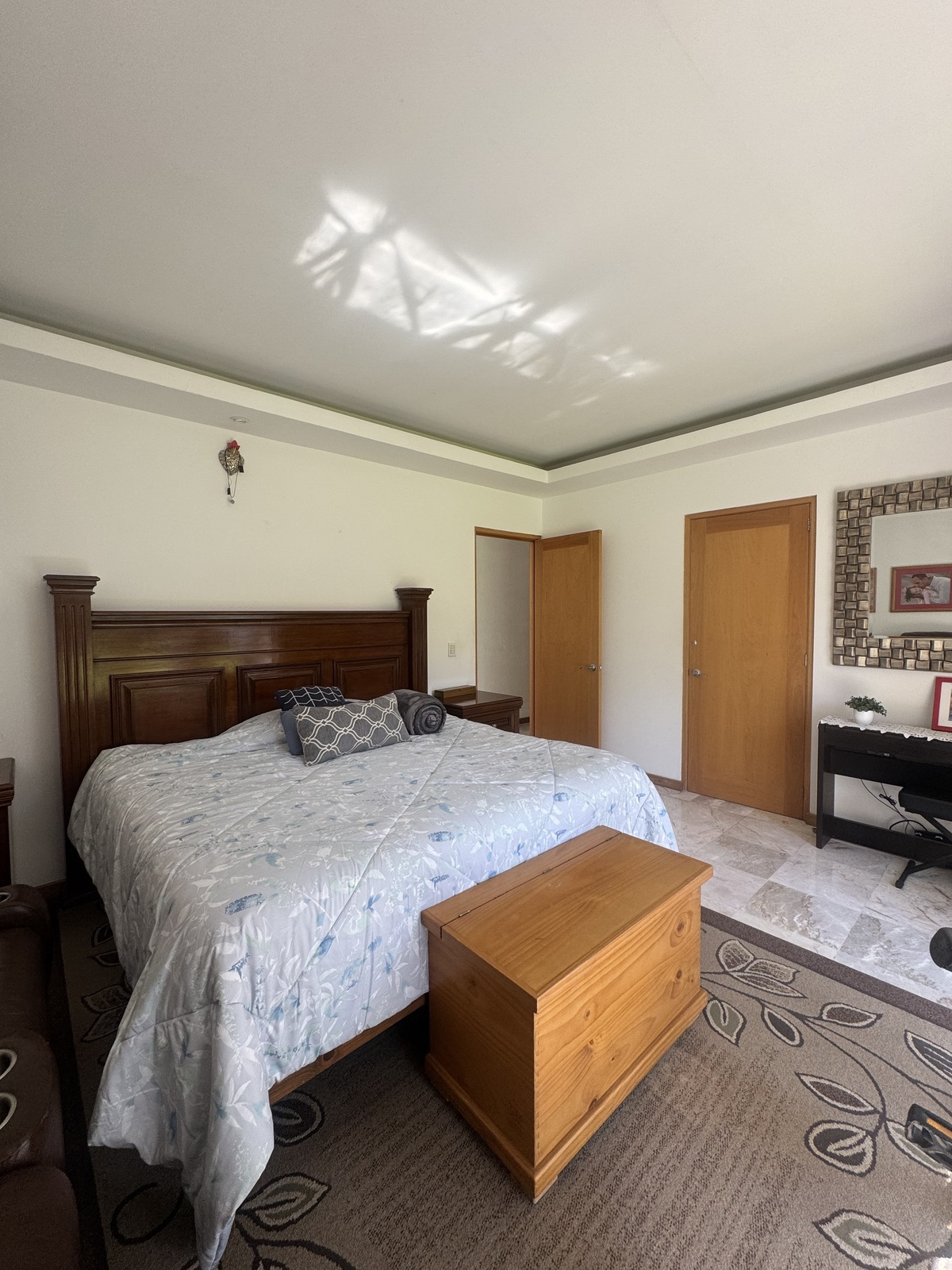 Recámara principal recién remodelada, muy amplia, con sala de TV, vestidor y baño completo de mármol Santo Tomás.