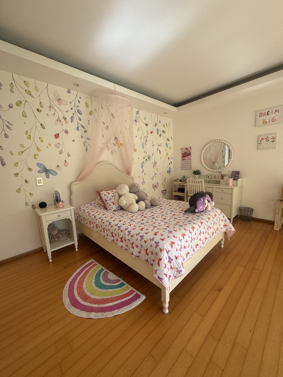 Recámara secundaria con duela, amplio baño completo y vestidor.