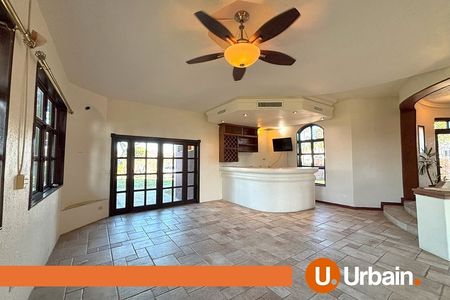 Casa con amplios espacios en la planta principal con sala y comedor fusionados para conformar el área social principal. El cuarto de televisión apartado de la sala también se encuentra en el mismo piso pareo aislado para brindar privacidad y convertir ese cuarto en un área familiar. La cocina es bastante amplia y cuenta con área de antecomedor lo cual cuenta con acceso directo a un gran jardín con pasto en la parte posterior de la casa. Asi mismo el patio cuenta con área para asador y un comedor exterior y tiene amplio acceso lateral que puede funcionar para estacionar 3 autos o bien para ampliar el área exterior del inmueble.