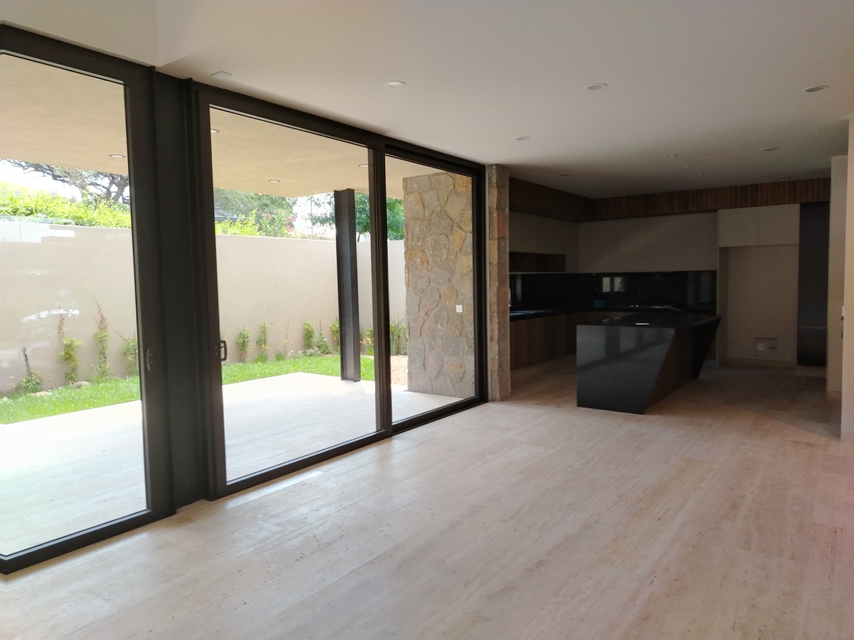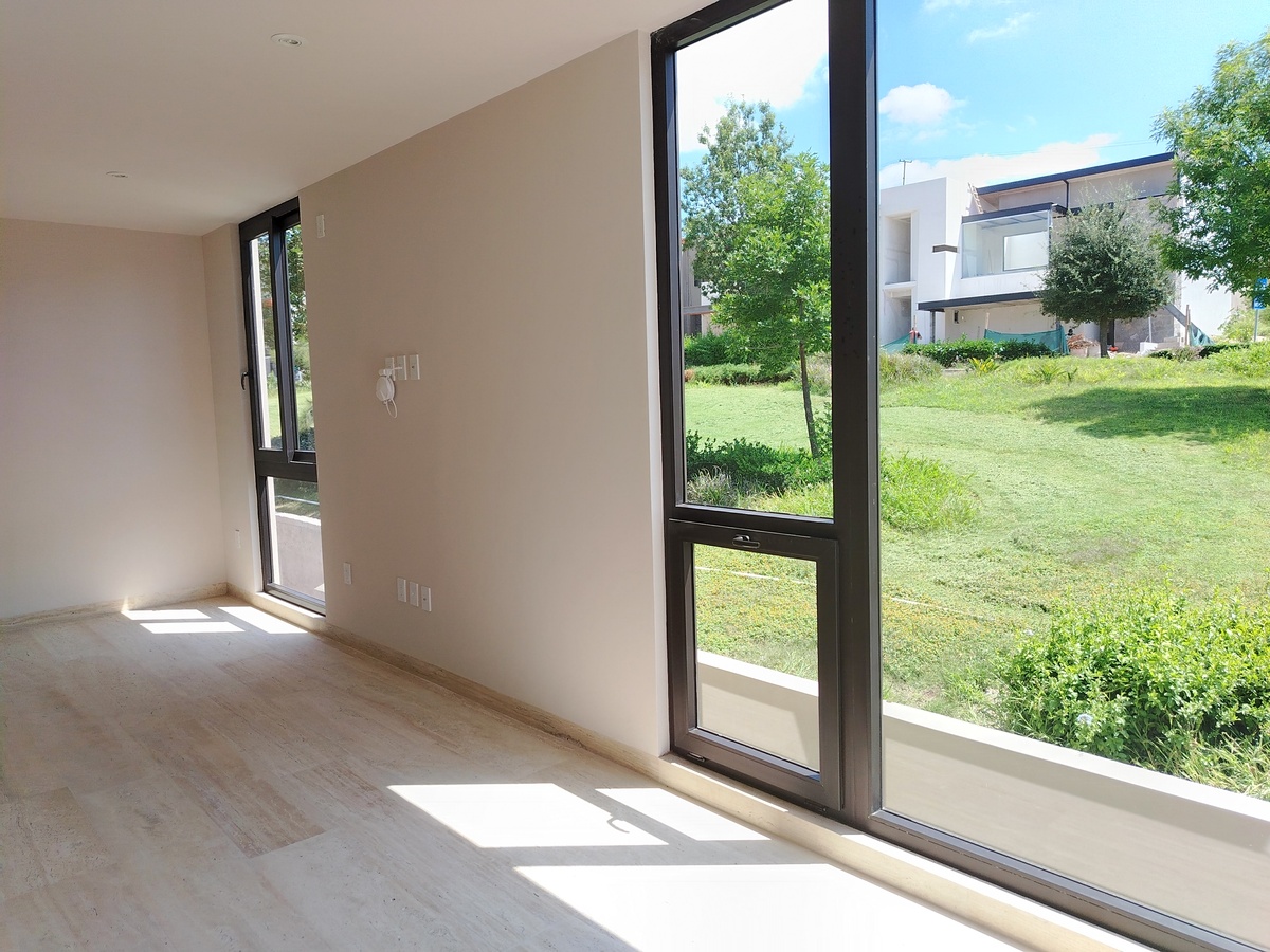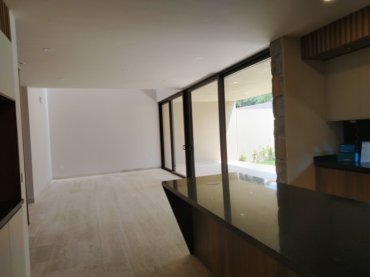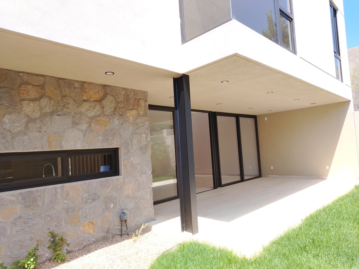 LA CASA CUENTA CON 3 LUGARES DE ESTACIONAMIENTO, DOS DE ELLOS TECHADOS, MEDIO BAÑO DE VISITAS, SALA CON TECHO DOBLE ALTURA, COMEDOR, COCINA ABIERTA CON ISLA EN MEDIO, ALACENA, PASILLO LATERAL QUE SE COMUNICA CON LA COCINA, Y AL AREA DE LAVADO CON CUARTO DE SERVICIO CON BAÑO COMPLETO, ESTUDIO U OFICINA CON BAÑO COMPLETO CON OPCIÓN A UNA CUARTA RECÁMARA EN PLANTA BAJA, TERRAZA TECHADA CON JARDIN DE 50M2, JARDINERA DEBAJO DE LAS ESCALERAS DE MADERA CON CRISTAL TEMPLADO, LA CASA CUENTA CON PISOS DE MARMOL Y MUCHA ILUMINACIÓN NATURAL.