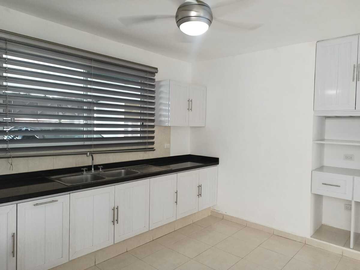 Sala, comedor y cocina equipados con abanicos y aires acondicionados