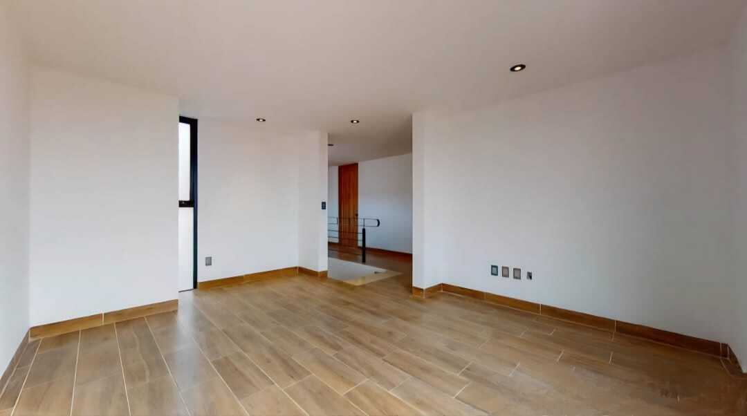 4 recámaras, 5 Baños, cuarto TV, Sala, Comedor y Cocina integral con gránito, vigas de madera natural en techo y 2.80 de altura planta baja.