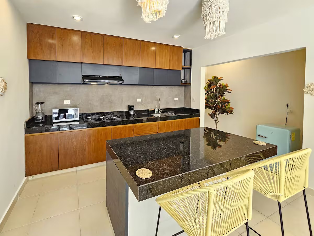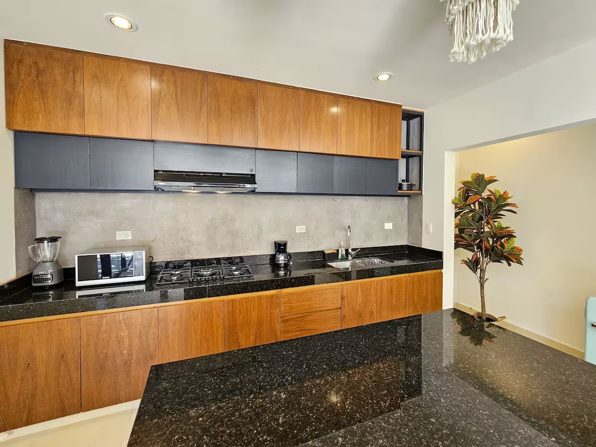 - Cocina con meseta de granito e isla con altura de 3.80 mts se entrega con Parrilla de gas.