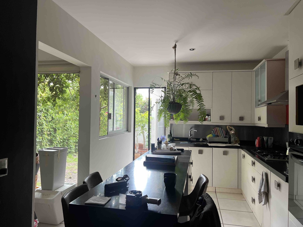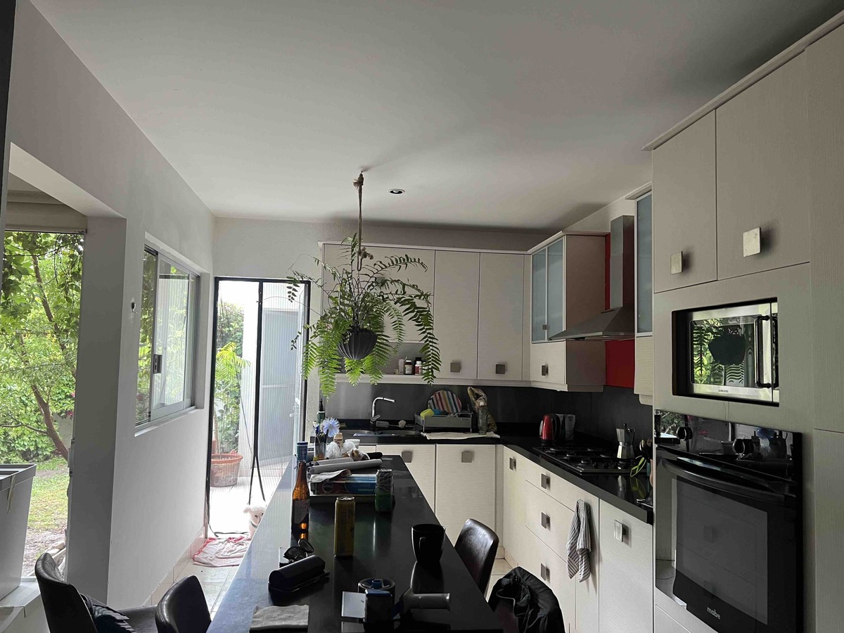 Casa de dos niveles, cochera para dos autos, amplia sala / comedor , área de tv en planta baja, jardín , área de lavado exterior techada, cuarto de servicio con baño completo, cocina equipada con alacena, parrilla y micro hondas, barra desayunador central, 1/2 baño de visitas.
