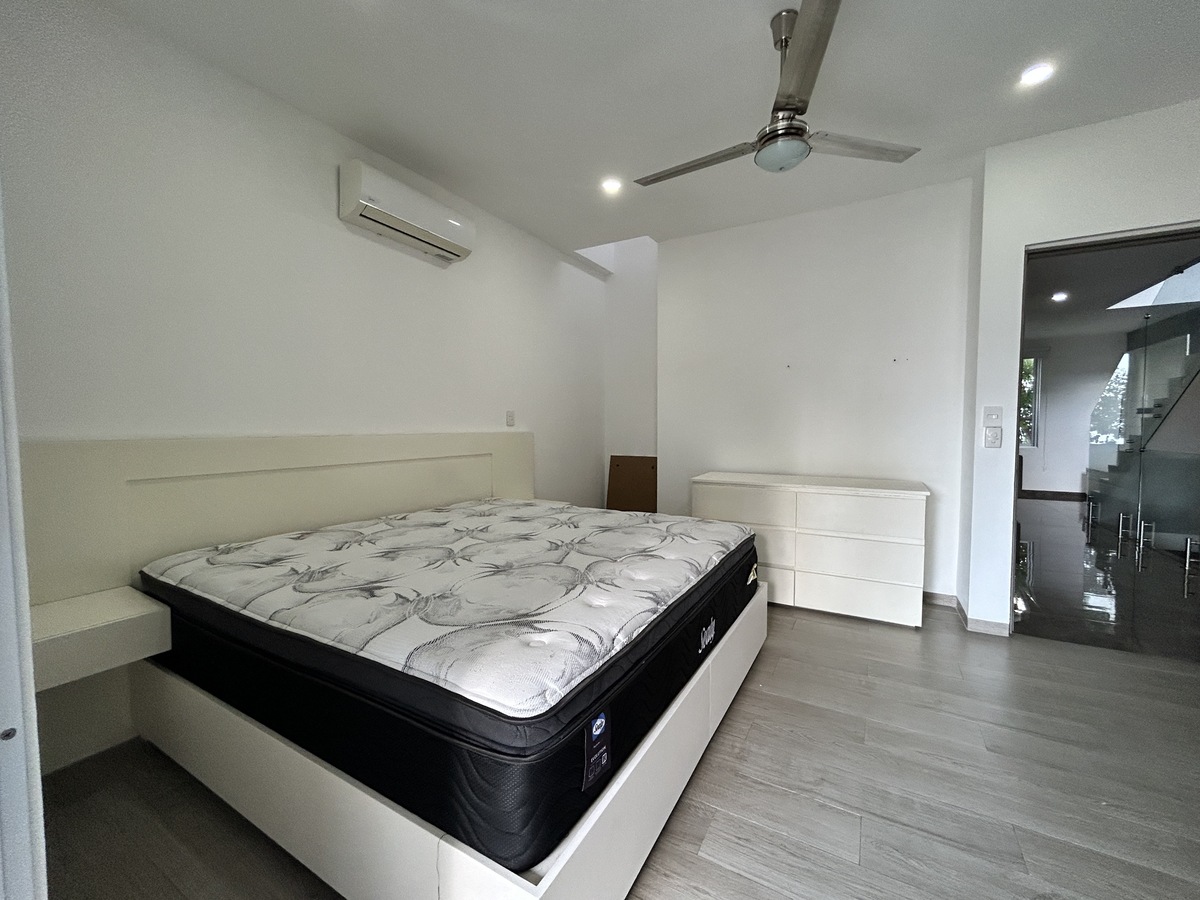 - Quarto secundário com vista para o jardim, closet e banheiro dentro do quarto.