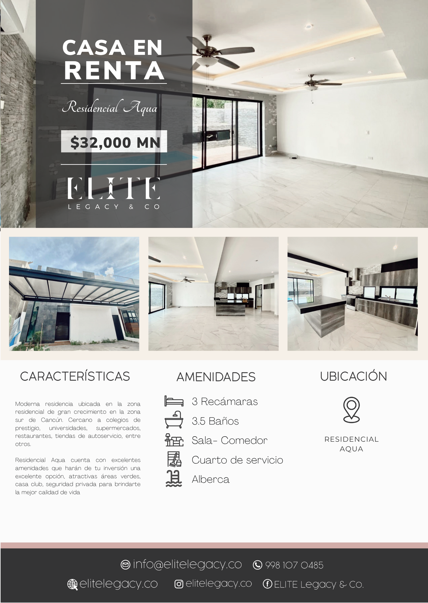 Moderna casa ubicada en la zona residencial de gran crecimiento en la zona sur de Cancún. Cercano a colegios de prestigio, universidades, supermercados, restaurantes, tiendas de autoservicio, entre otros.