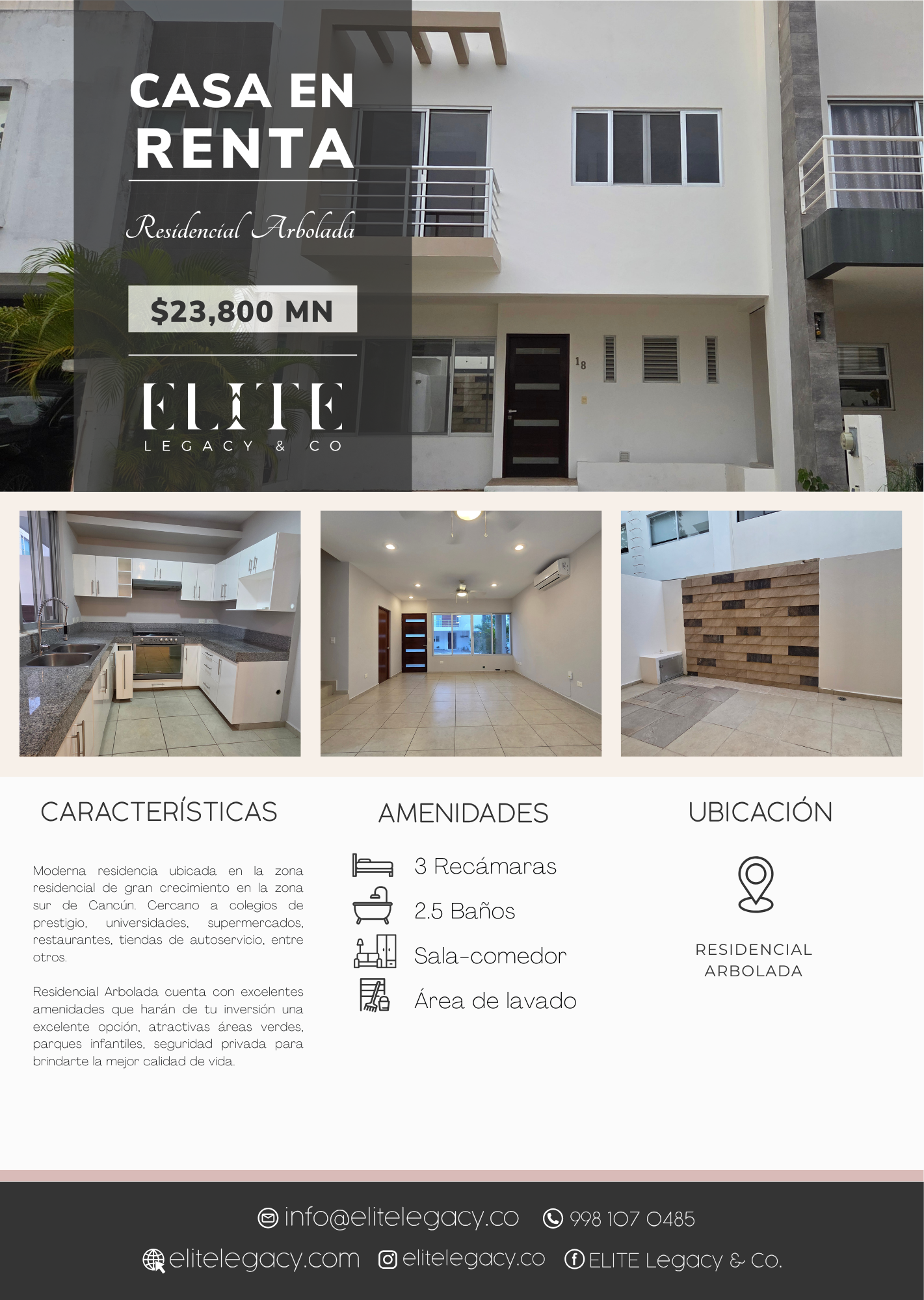 Moderna residencia ubicada en la zona residencial de gran crecimiento en la zona sur de Cancún. Cercano a colegios de prestigio, universidades, supermercados, restaurantes, tiendas de autoservicio, entre otros.
