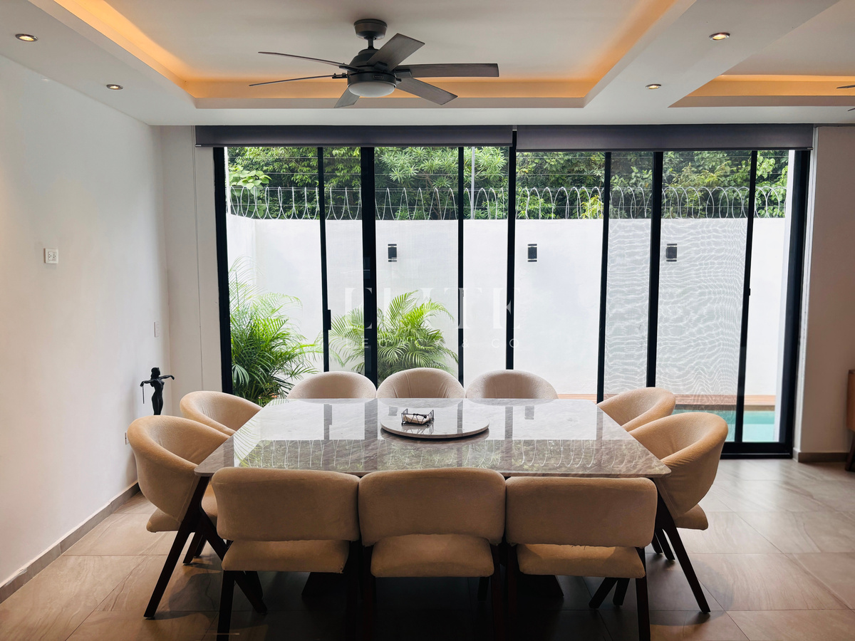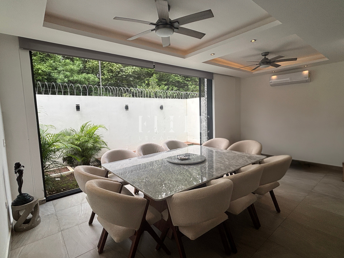 Moderna residencia de tres niveles ubicada en la zona residencial de gran crecimiento al sur de Cancún, cercana a colegios de prestigio, universidades, supermercados, restaurantes y tiendas de autoservicio.