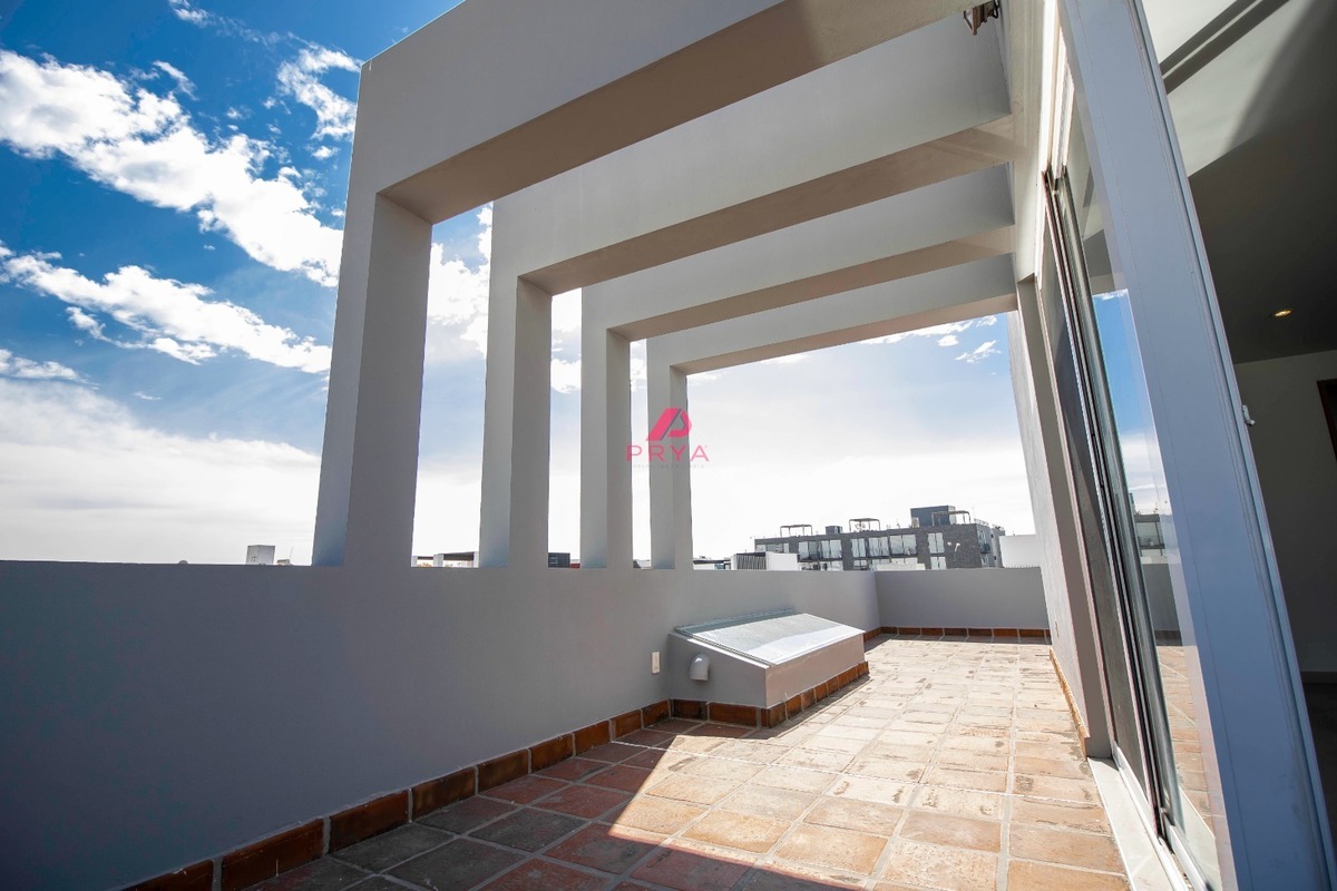 En P.B. Sala, comedor , y cocina abierta con baño completo y terraza y cuarto de servicio.