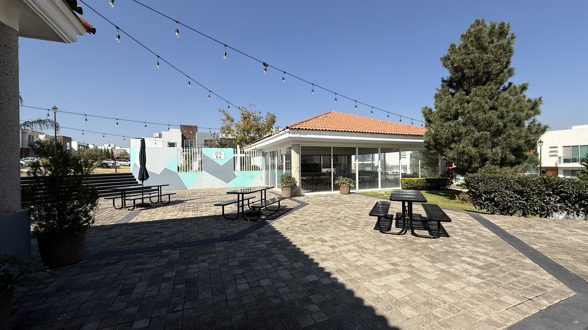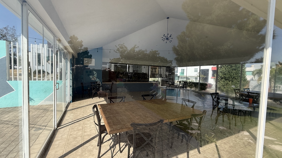 vigilancia, salón de usos múltiples, alberca, área de juegos infantiles y asador, la casa cuenta con 4
