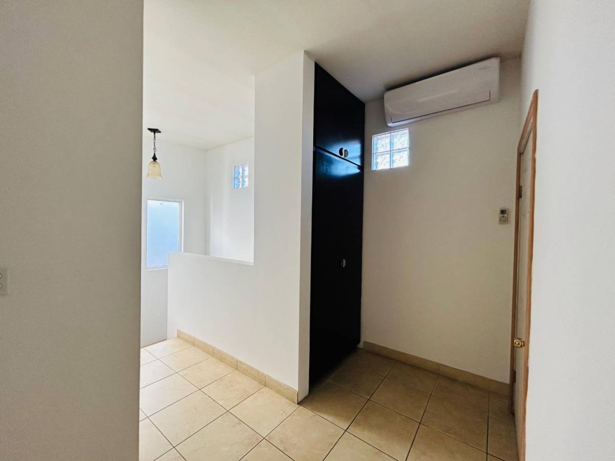 Casa de 2 plantas, dentro de fraccionamiento controlado 24 hrs. En la planta baja se encuentra la sala con techo alto, comedor, cocina integral con cubiertas de cuarzo, medio baño, habitación con baño completo privado y amplio cuarto de lavandería. En segunda planta distribuidor con closet de blancos, tres habitaciones, un baño completo.