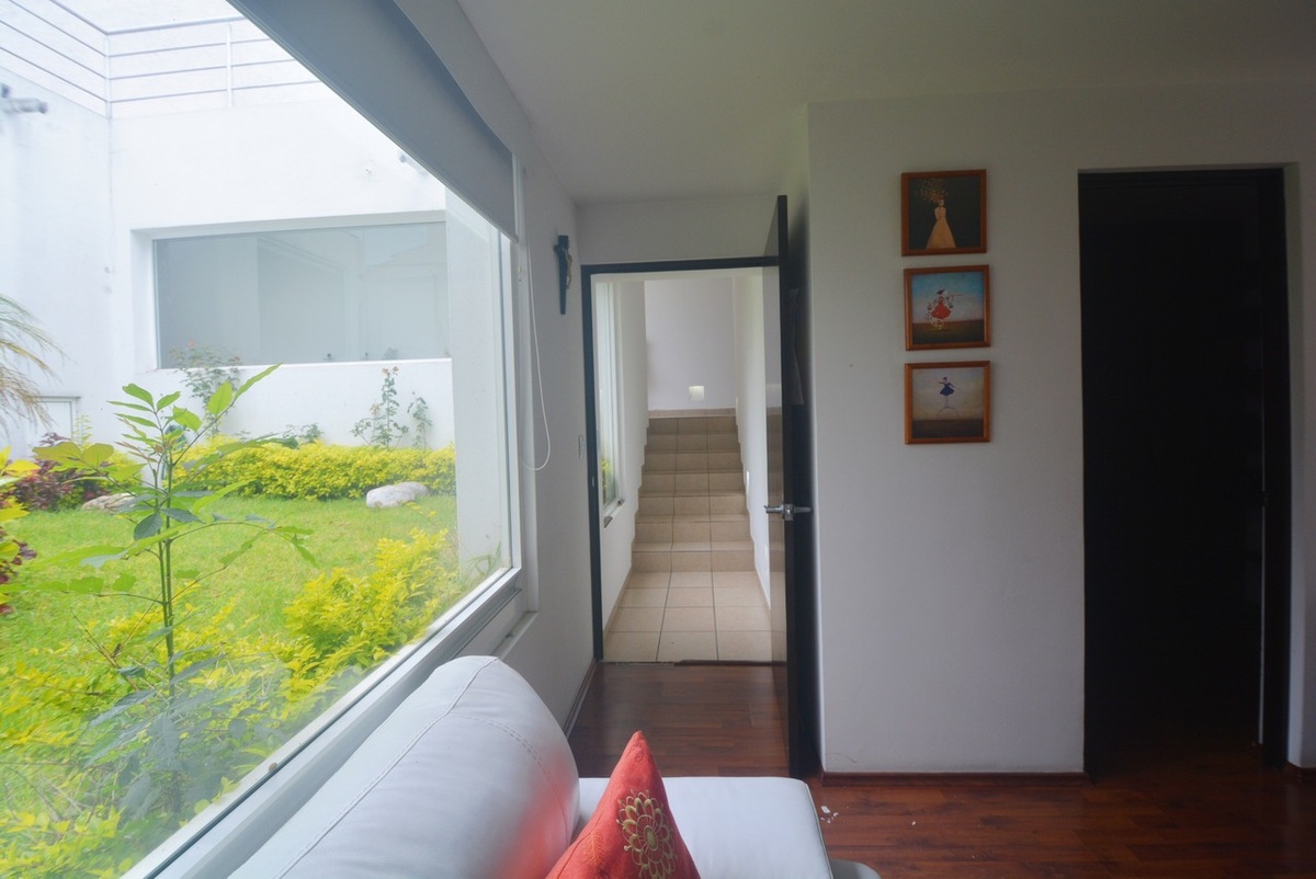Cuenta con 3 recámaras, estudio, sala de TV, terraza y jardín; 4 baños y medio; sala, comedor, cocina integral, cuarto de lavado, bodega y patio de servicio. Incluye puerta eléctrica y 2 estacionamientos techados en batería. La propiedad se entrega sin muebles y con mantenimiento incluido.