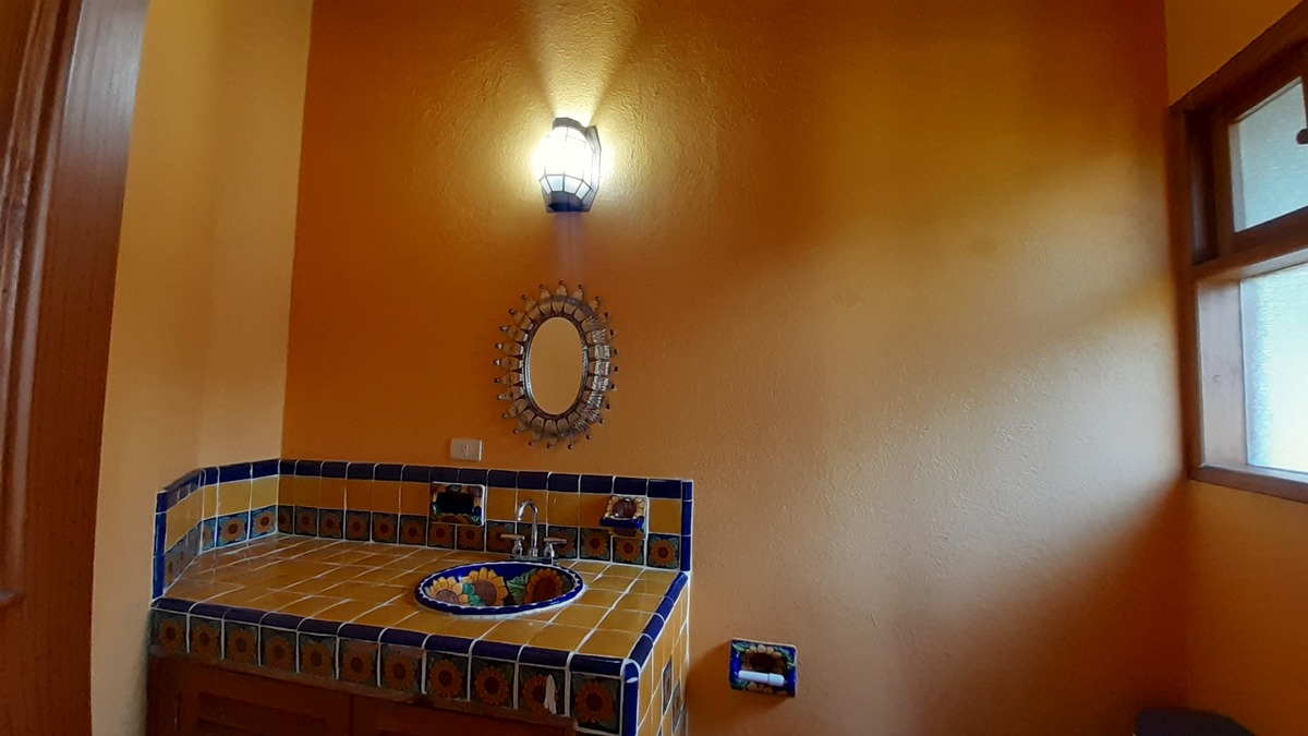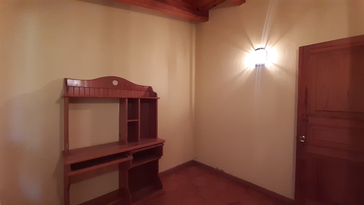 1 nivel, 3 recámaras (2 comparten baño), estudio, sala con chimenea, cocina, comedor, terraza techada, cuarto de lavado, amplio jardín plano, garage cubierto para 2 autos y varios descubiertos. SIN MOBILIARIO