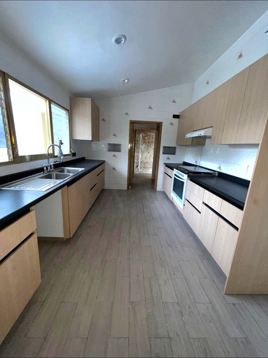 Disfruta de la gran iluminación y distribución en una sola planta, con vista en todas sus áreas al jardín. Estancia, sala y comedor de gran tamaño. Cocina integral equipada con área de antecomedor muy bien iluminada y ventilada. 3 recámaras cada una con baño propio, la principal con vestidor muy amplio, jacuzzi y vista al jardín. Family Room, despacho de 150 m aproximadamente, con acceso independiente y baño completo. Hermoso jardín de 300 m, con terraza de 80 m. Cuarto de huéspedes con su propio baño. 2 Cuartos de servicio. Taller para trabajos, cuarto de máquinas y Garage para 6 autos techados. No pierdas oportunidad para visitarla !!