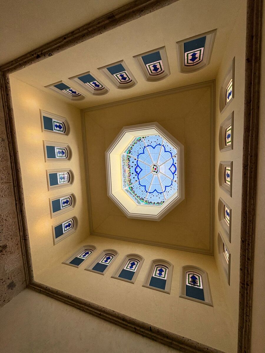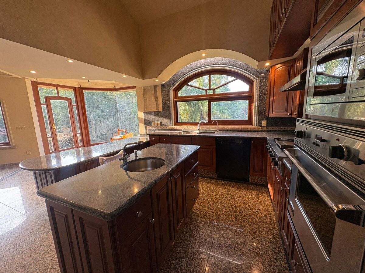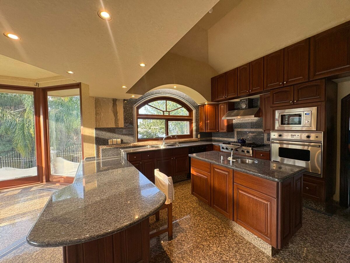 La residencia ofrece cuatro amplias habitaciones, elegantes espacios interiores, una majestuosa cúpula con vitrales, chimenea, así como una amplia cocina equipada con isla y barra de desayuno.