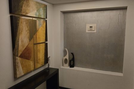 • Barra de asador con porcelanato gran formato, tarja y campana de acero inoxidable (no incluye asador)