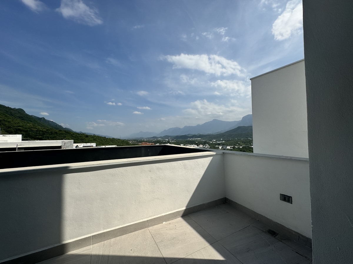 Casa en venta Castaños del Vergel, Carretera Nacional Monterrey N.L. Casa en fraccionamiento privado, con acceso controlado, totalmente terminada con cocina clóset y canceles, lista para estrenar con vistas hacia a montaña. Casa de dos plantas -cochera para 3 autos -sala comedor -cocina integral de diseño con isla y cubiertas de granito -recibidor doble altura con escalera de herrería con pasamanos de cristal templado de 9mm -terraza social techada con barra de granito y preparación para asador -jardín interior y exterior 68.60 m² -estancia de TV en planta alta -recámara principal con baño y vestidor (con la lavabos de granito con lavanetas de madera y espejo, sanitario de una pieza, regadera de lluvia y puertas de cristal templado y clóset de diseño. -dos recámaras secundarias con baño y vestidor propio (lavabos de granito con lavanetas de madera y espejo, sanitario de una pieza, regadera de lluvia y puertas de cristal templado y clóset de diseño) -balcón en estancia de T.V. -baño de visitas (lavabo de granito, repisa de madera y espejo) -lavandería con patio de tendido -cuarto de servicio con baño propio Amenidades: -alberca -área de juegos infantiles "Esta es una de las varias opciones que tenemos para ti. Somos una agencia de bienes raíces especializada en la venta y renta de vivienda residencial, te brindamos un servicio personalizado y de alta calidad. Si necesitas ayuda para comprar o rentar, contáctanos y uno de nuestros asesores te atenderá." EB-QX6230