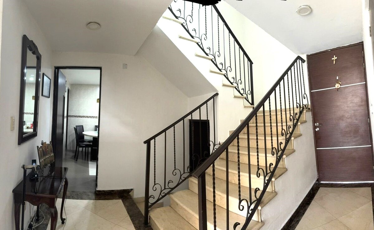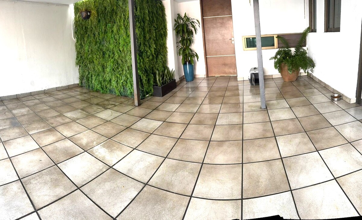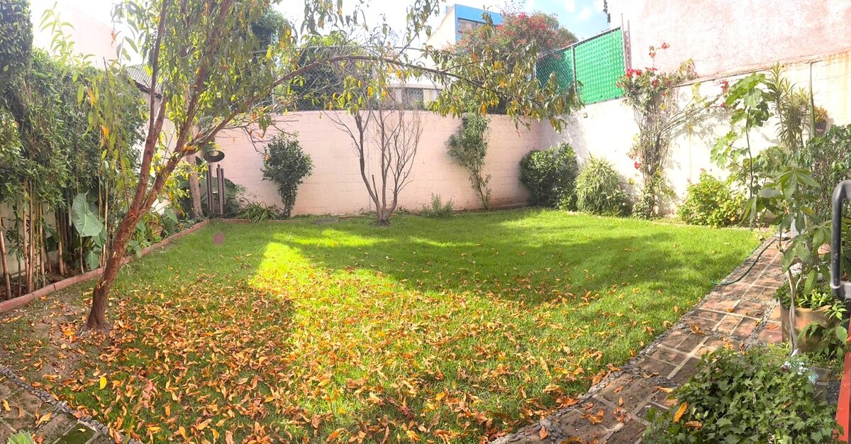 P.B. Garage techado para 3 autos, sala comedor corridos con vista al jardín de 50 mts., cocina muy amplia con área desayunador, estudio de muy buen tamaño, baño de visitas, cuenta con elevador