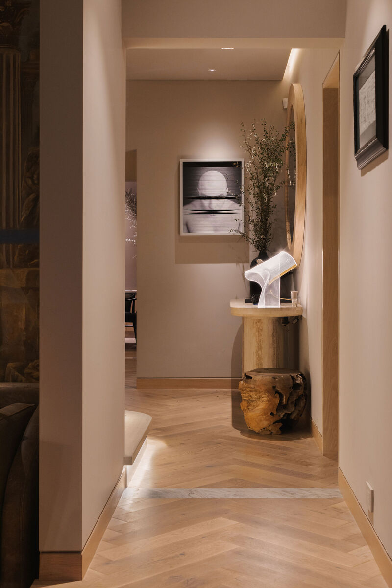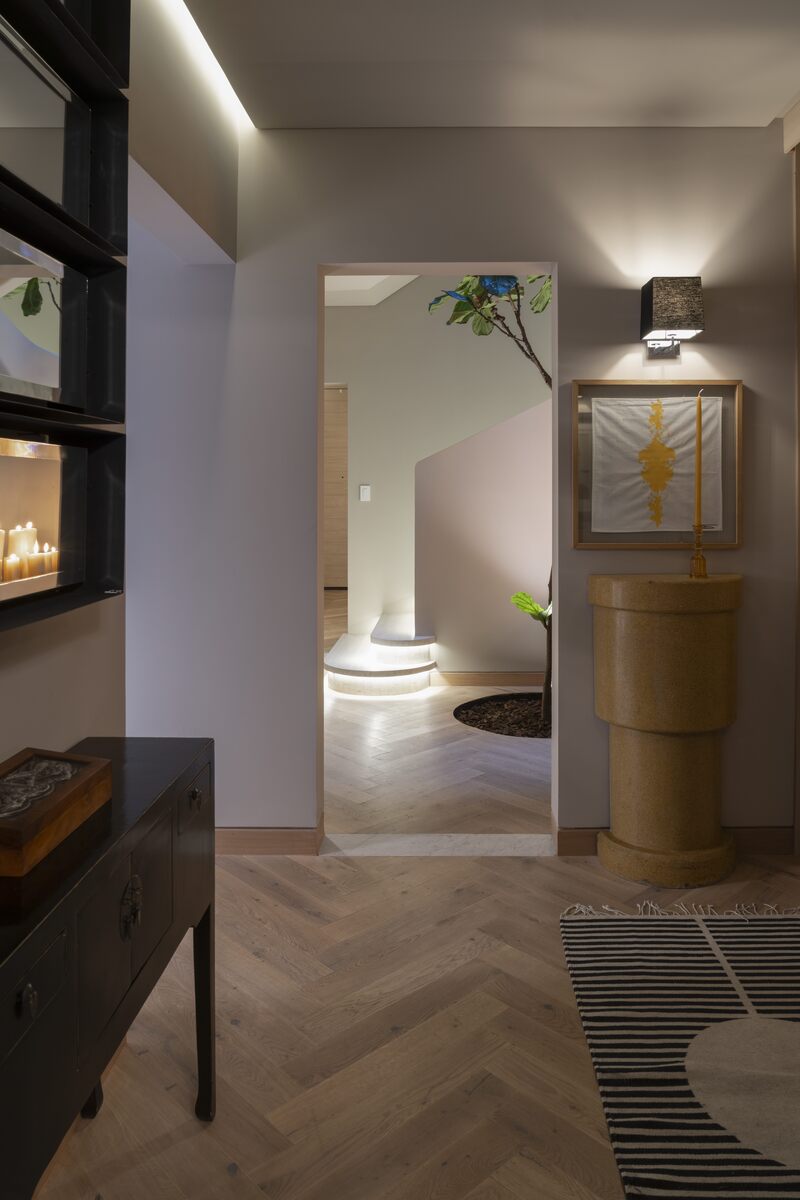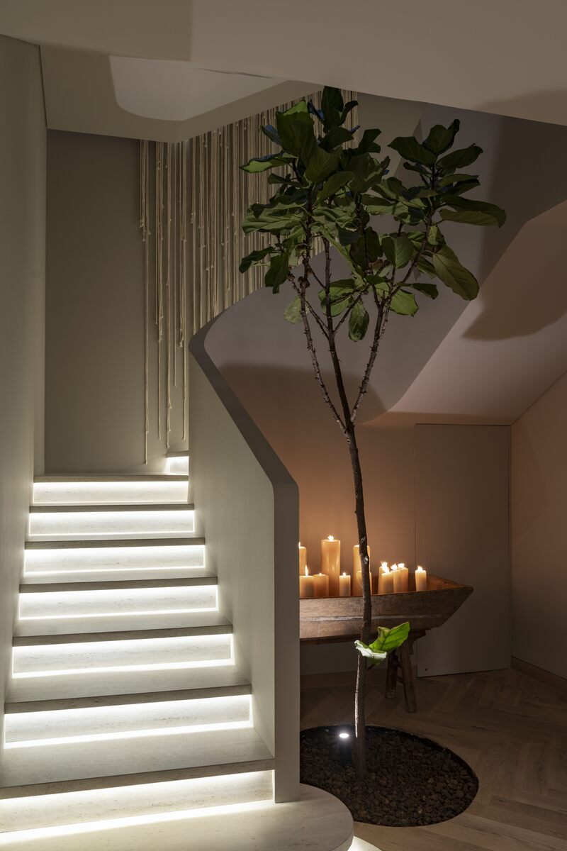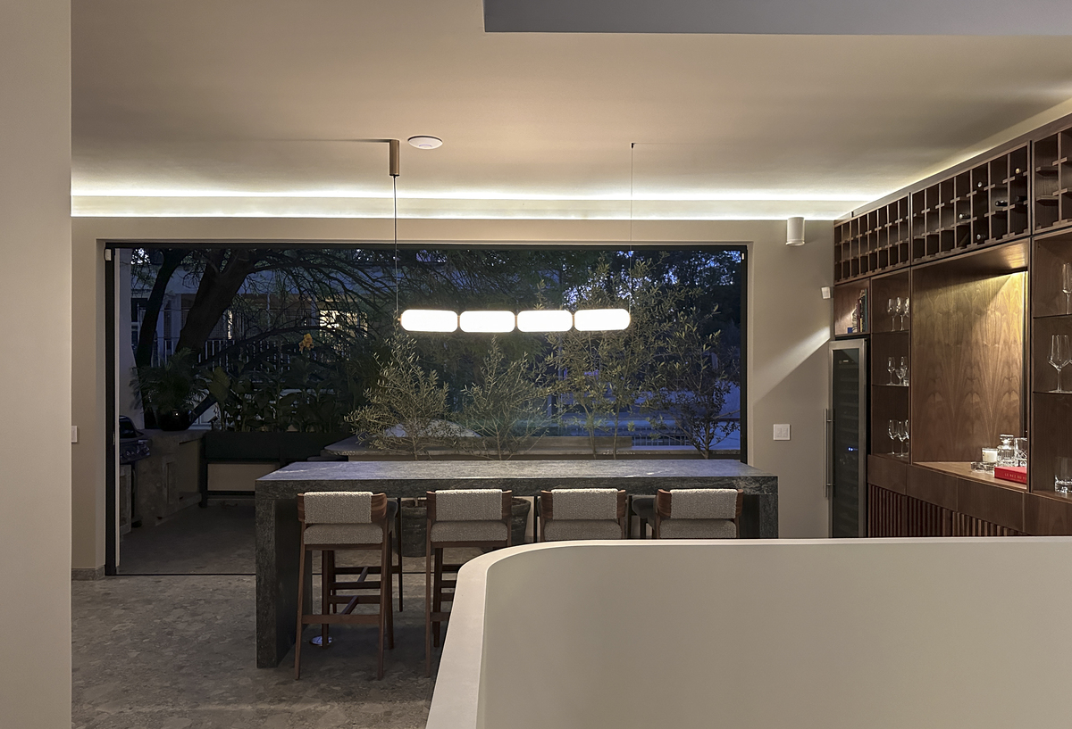 La casa integra tecnología de vanguardia: iluminación y sistema de sonido automatizados, pisos de madera de ingeniería, escaleras y terrazas revestidas en piedra tecnológica. Una cuidadosa selección de materiales de la más alta calidad como Dekton, Silestone, Sensa y Scalea se emplean en escaleras, lavabos, cubiertas de cocina, terrazas e incluso el recubrimiento del jacuzzi, otorgando resistencia, estética contemporánea y creando un diálogo cromático en coloresneutros.