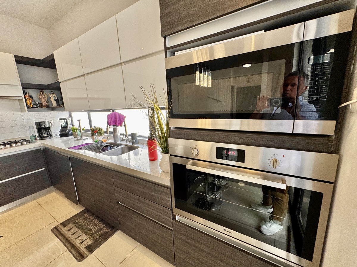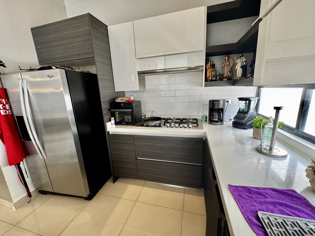 • Cocina integral totalmente equipada con horno, parrilla, campana, alacena/bodega e isla de granito