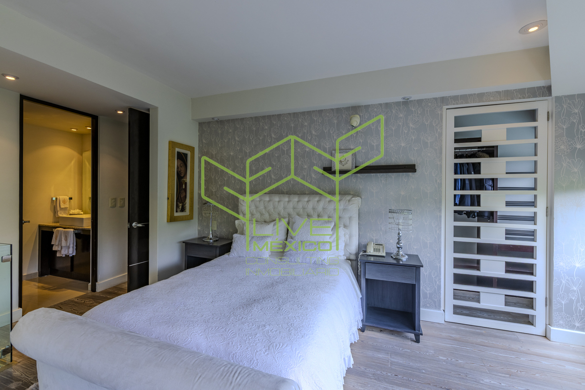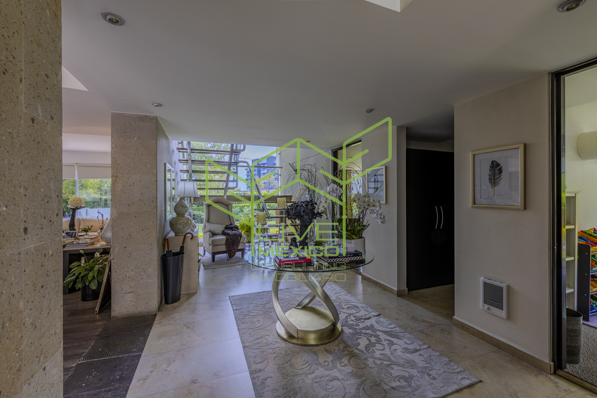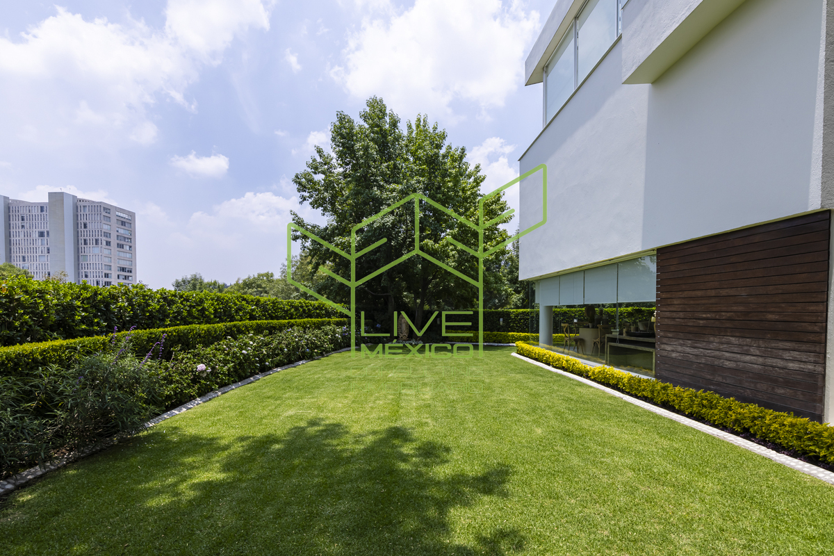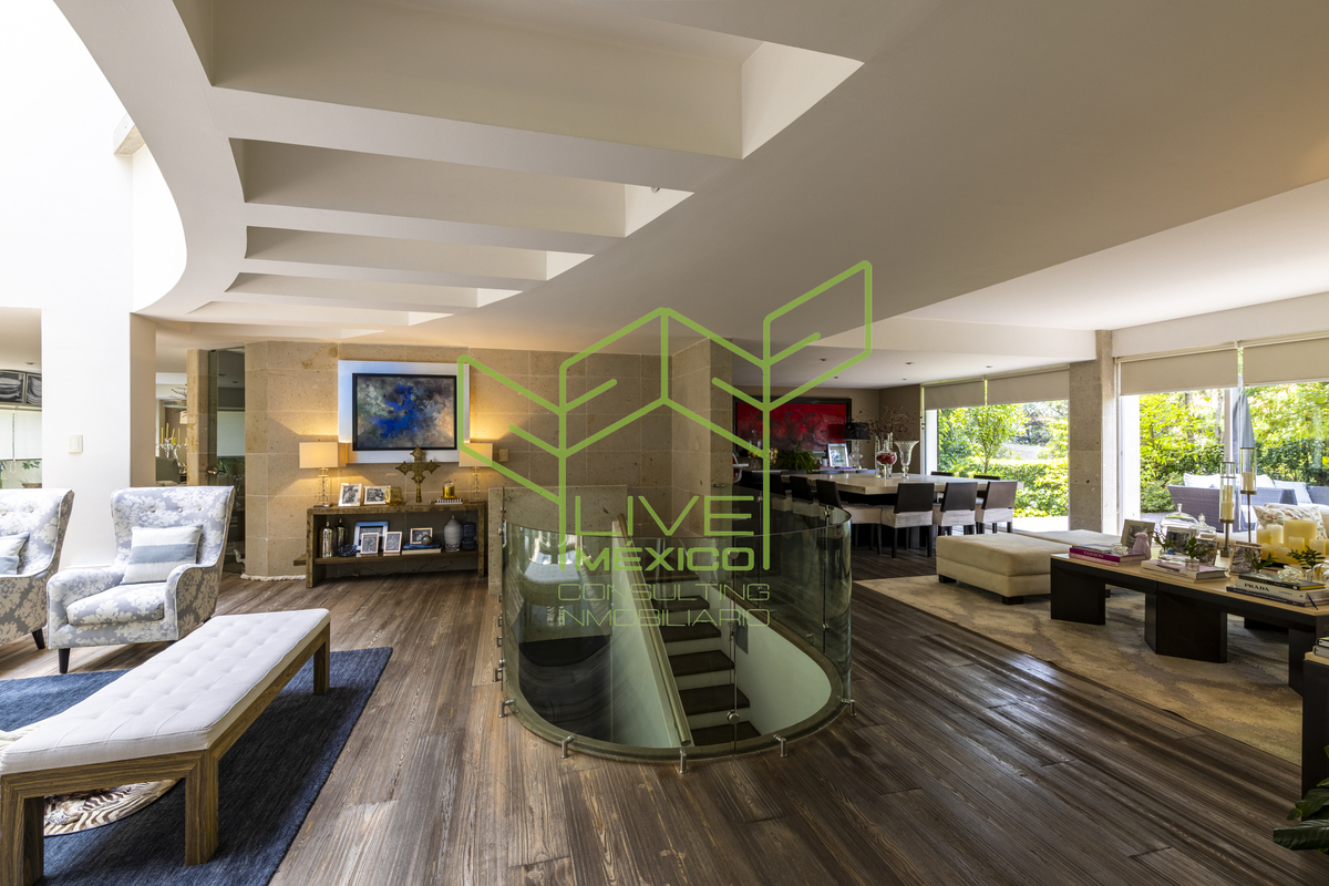 Residencia de gran amplitud y diseño arquitectónico excepcional, ubicada en uno de los fraccionamientos más exclusivos y seguros de la Ciudad de México.