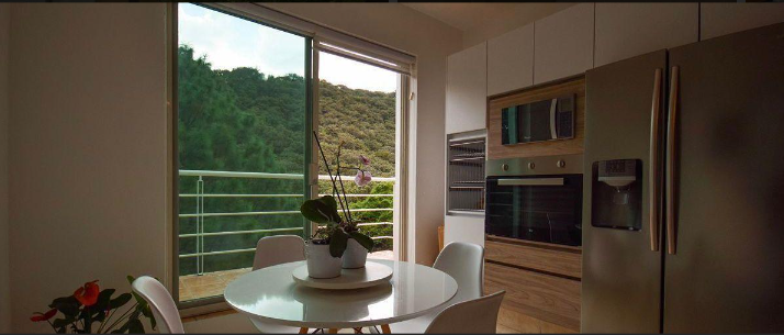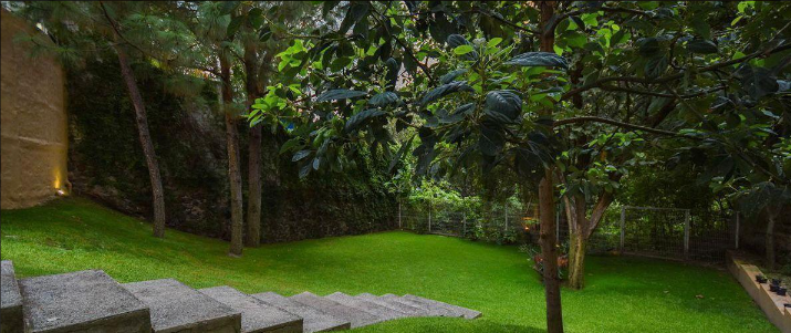 Cochera para 5 autos techados, ingreso ajardinado con un recibidor a doble altura, baño de visitas, patio de servicios, cuarto de servicio, cocina integral con vista al bosque, alacena, comedor, sala a doble altura y terraza techada con una increíble vista al bosque,