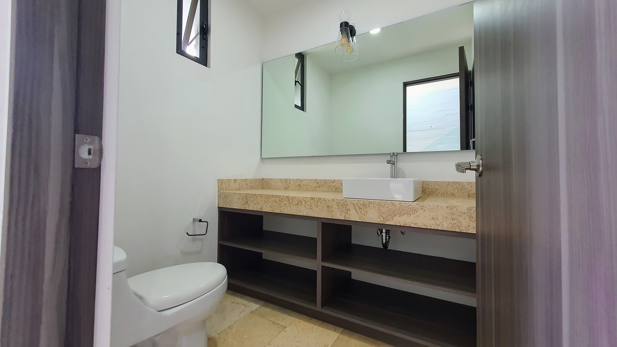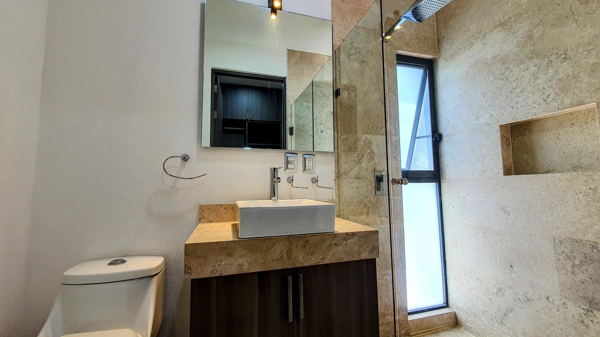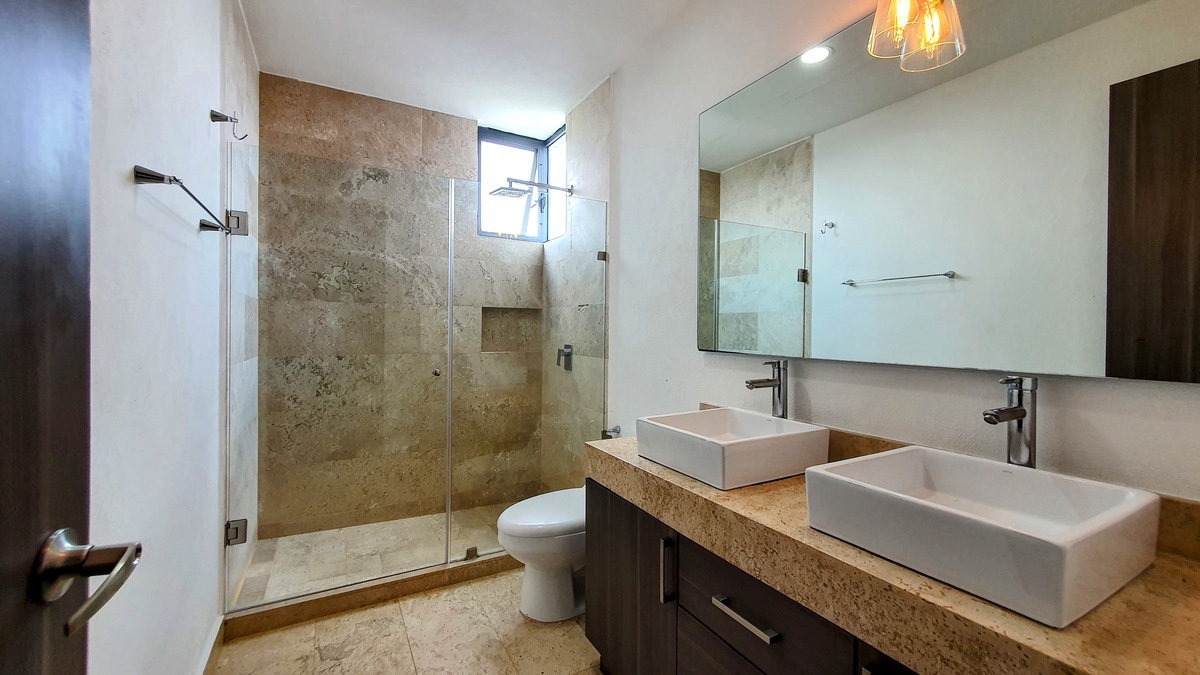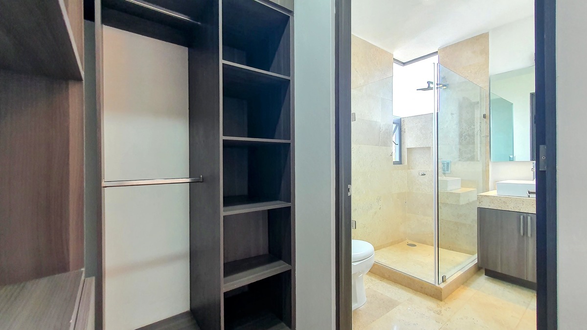 Cada recámara tiene un mini split, cortinas traslúcidas, cortinas black out, baño completo y vestidor. En la recámara principal cabe una cama king size y en las recámaras secundarias caben camas queen. Tiene área de TV, área para oficina, cuarto de servicio con baño y área de lavado.