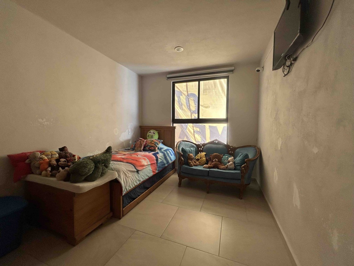 Área verde con juegos infantiles, gimnasio, y salón de usos múltiples.