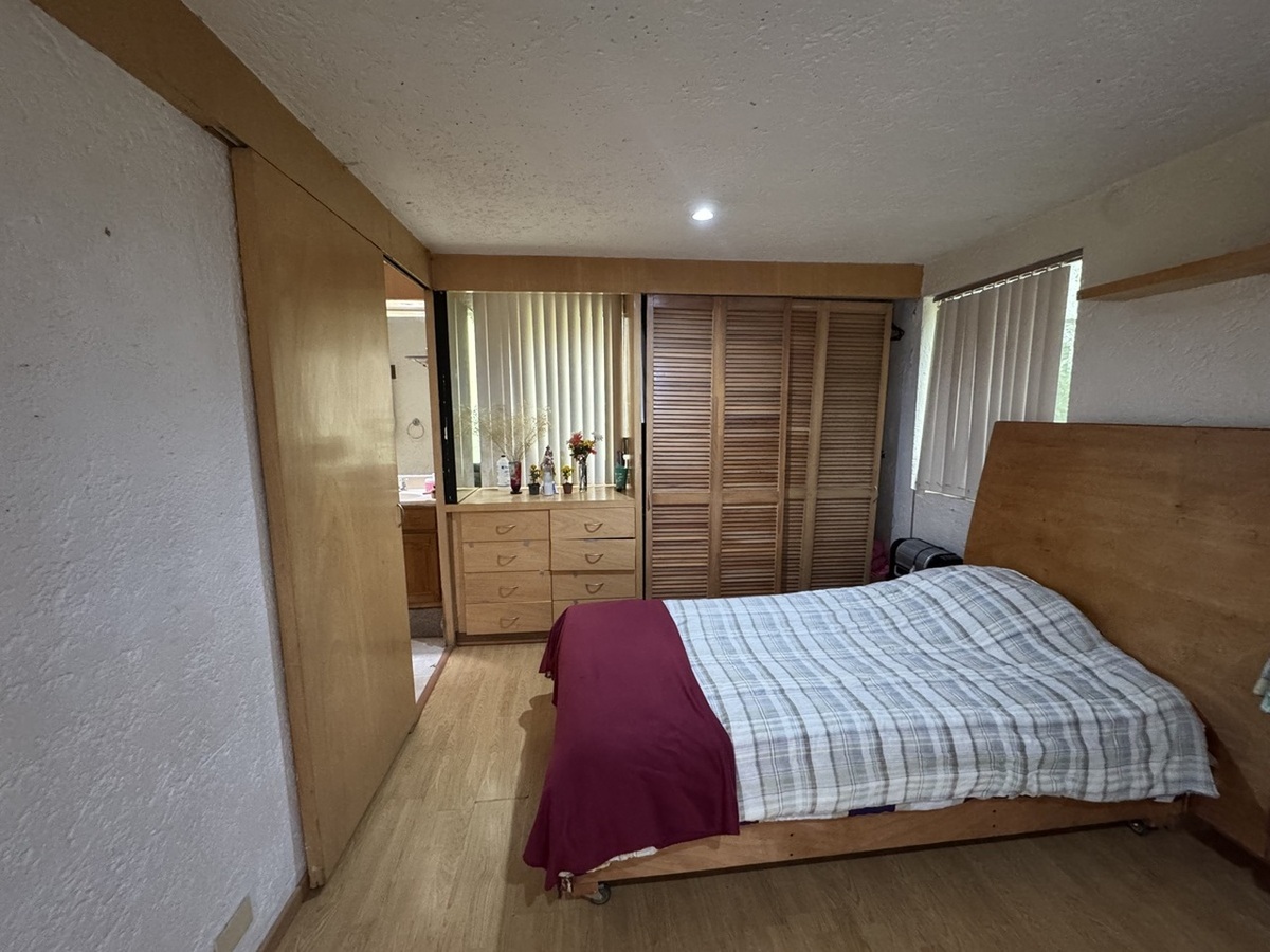 Casa en calle cerrada en Barrio de San Francisco , con jardín y área federal , consta de 3 recámaras, 3. 5 baños , la recámara principal se encuentra en primer piso con walking clóset. Cuenta con sala comedor con chimenea, salida al jardín con árboles frutales y terraza, cuarto de televisión y estudio , proyecto Ideal para actualizar y dejar a su gusto. Son 25 casas en el condominio muy seguro y cerca a los puentes de Santa Fe.