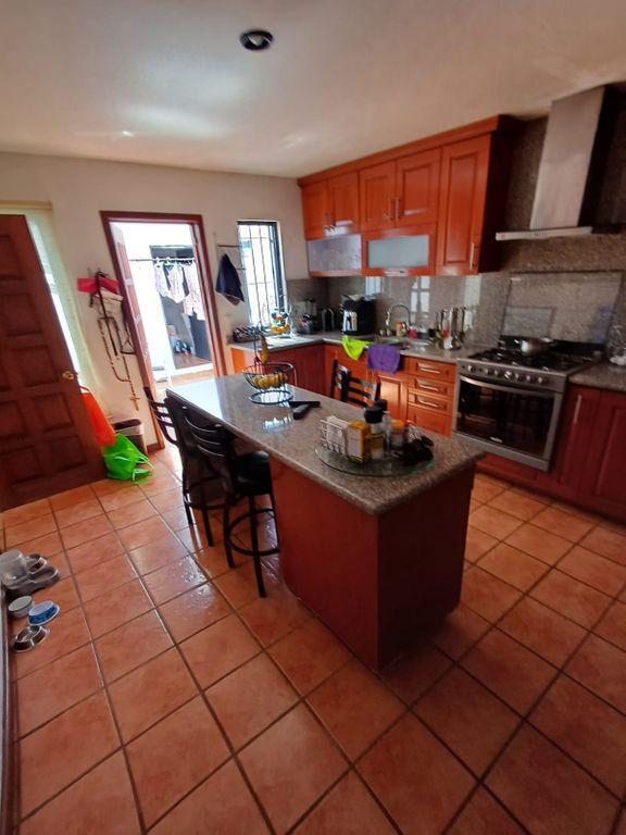 Cochera para dos carros, sala comedor cocina, baño de visitas, cuarto de lavado, una recámara abajo, muy amplio jardín, con un muro llorón.