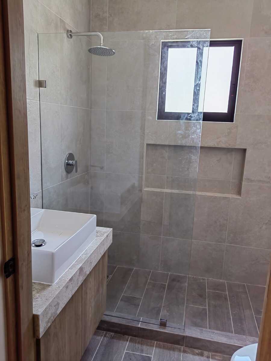 4 baños completos con cubiertas de mármol y vidrios templados 🚿