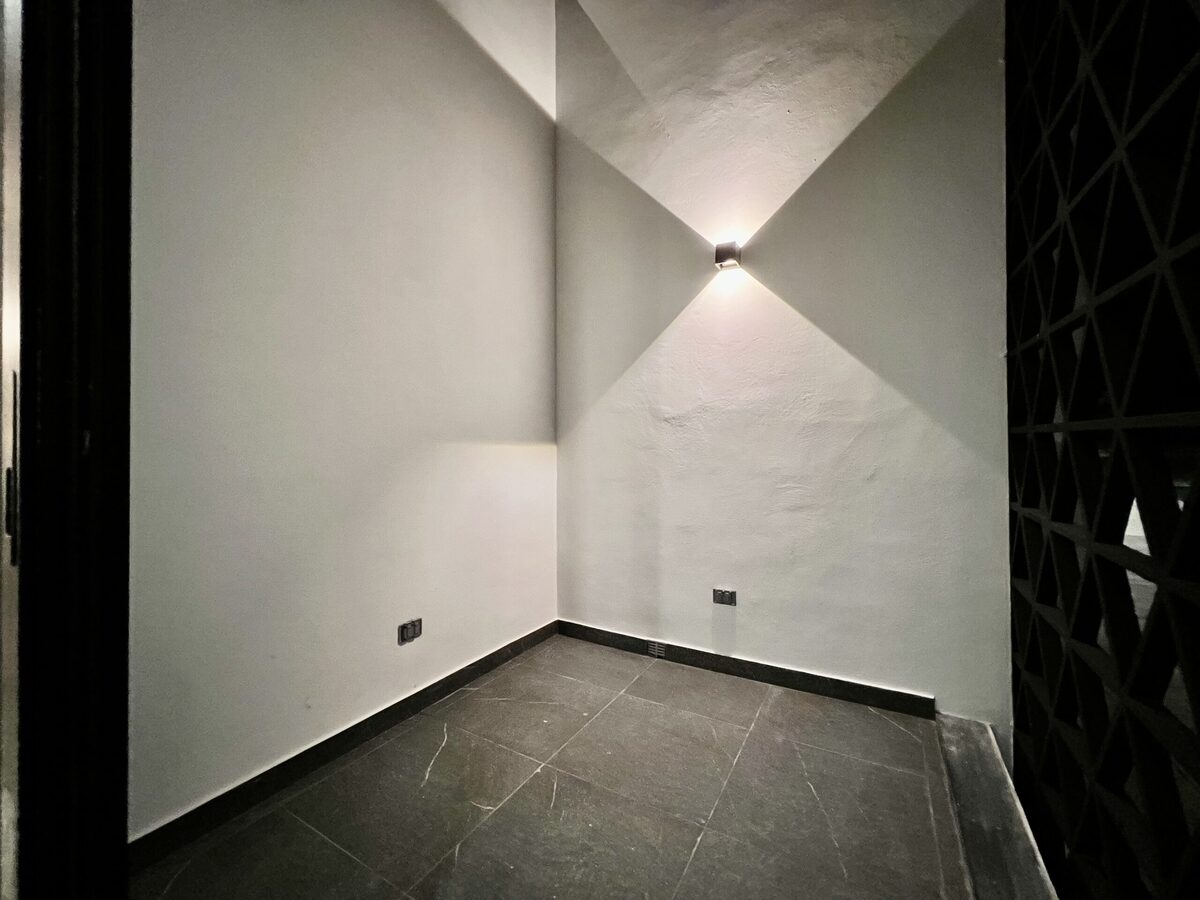 Domos de cristal templado en escalera y cuarto de lavado.