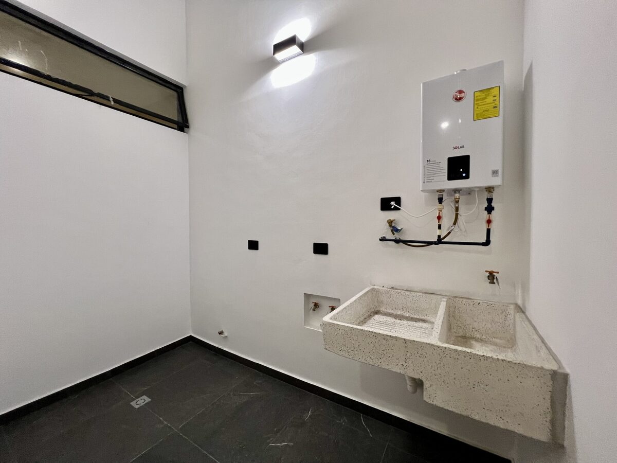 Cuarto de lavado con preparaciones eléctricas y de gas.