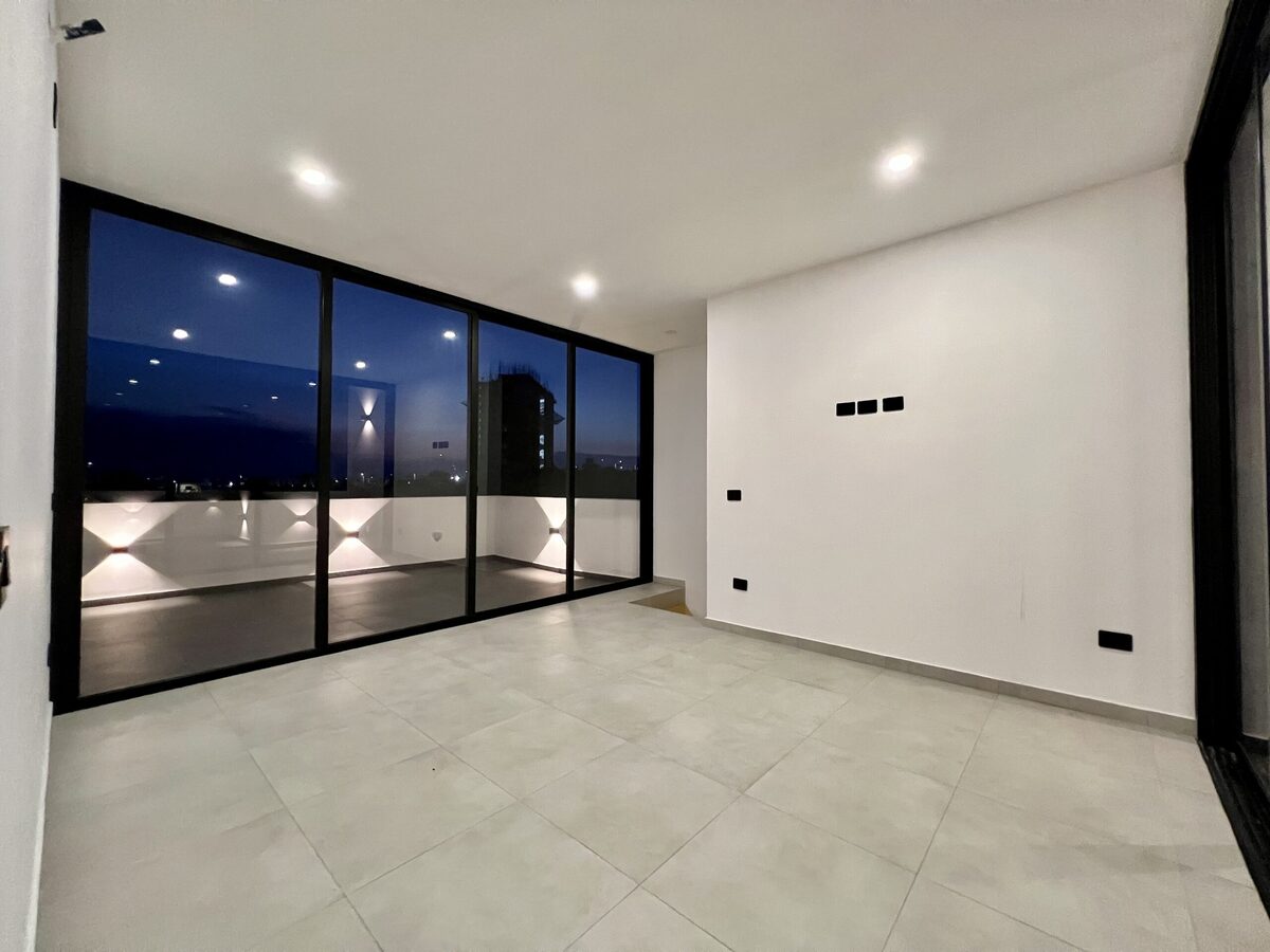 Diseño moderno con techos de entrepiso de 2.80 m y doble altura en sala-comedor-cocina hasta 3.40 m, creando espacios amplios y luminosos.