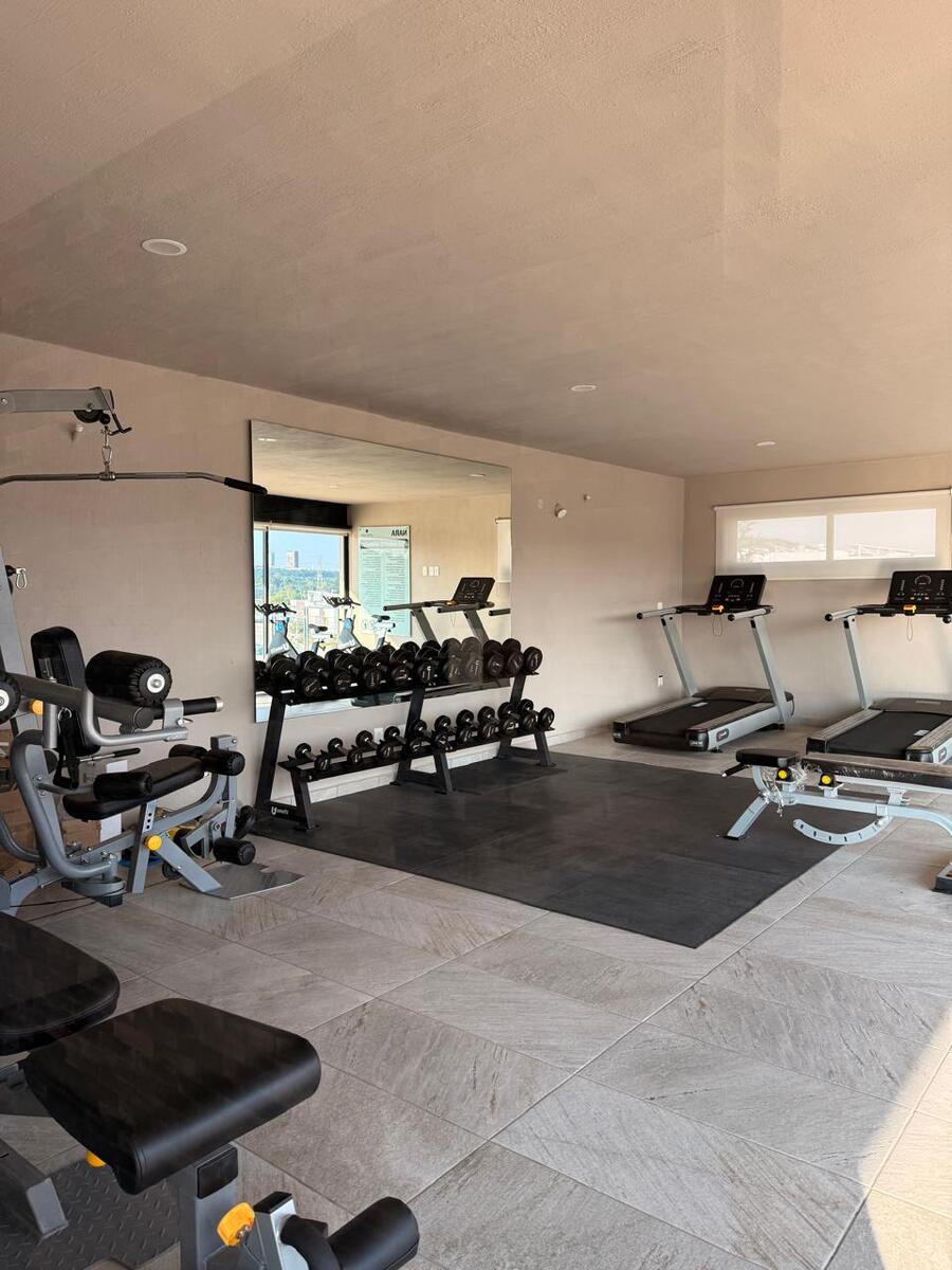 Casa club con alberca, gimnasio, área de yoga, terraza para eventos y baños.