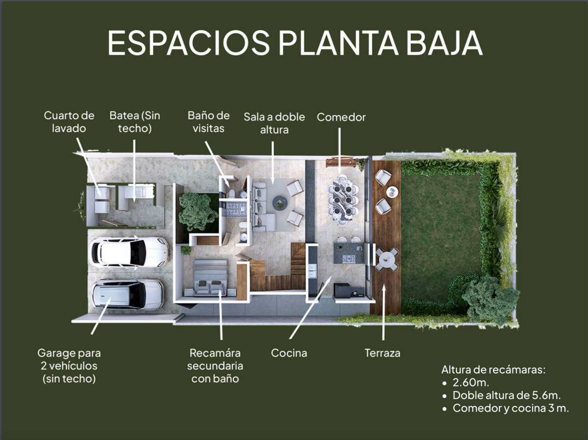 Cada casa ha sido diseñada con un estilo moderno y funcional, privilegiando la iluminación natural, los espacios amplios y la integración con el entorno natural yucateco.