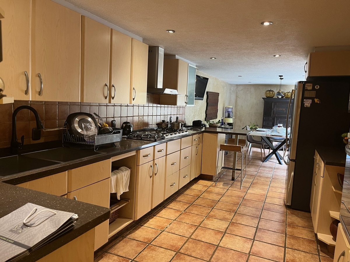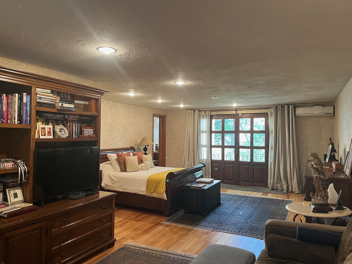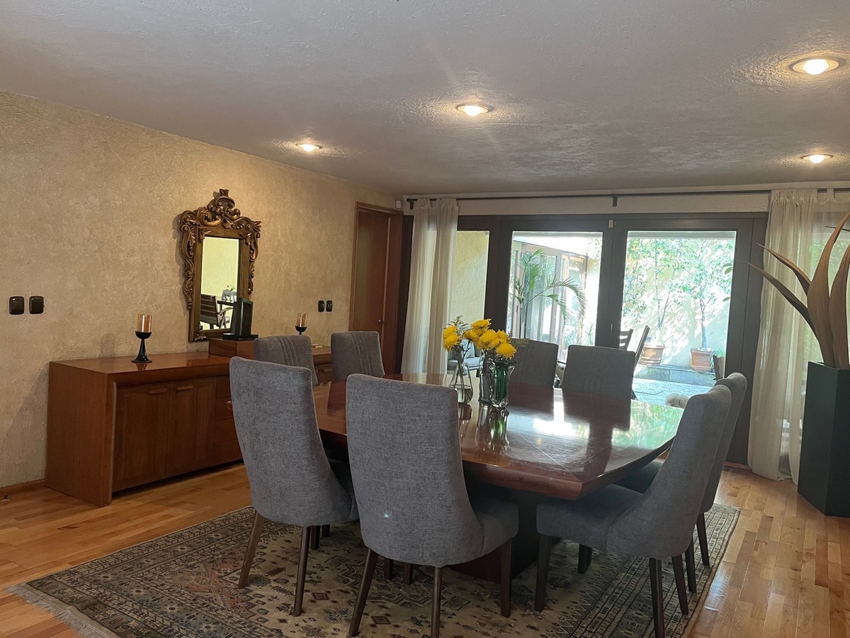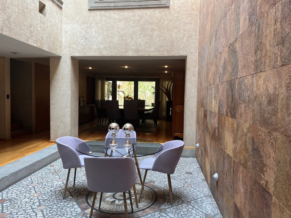 Amplia casa con muy buenos acabados en la primera planta se encuentra sala comedor, desayunador cocina y un patio interior con bar, baño de visitas y patio exterior, subimos al primer piso donde hay 3 amplias recamaras, la principal con una sala interior balcón, amplio baño y vestidor, las otras 2 recamaras tienen baño y vestidor, un amplio family room y un despacho, en segundo piso se encuentra un salón de visitas, con sala comedor, una gran terraza, también esta el cuarto de servicio, bodega y cuarto de lavado. Tiene estacionamiento para 3 coches con portón eléctrico. La casa cuenta con paneles solares.